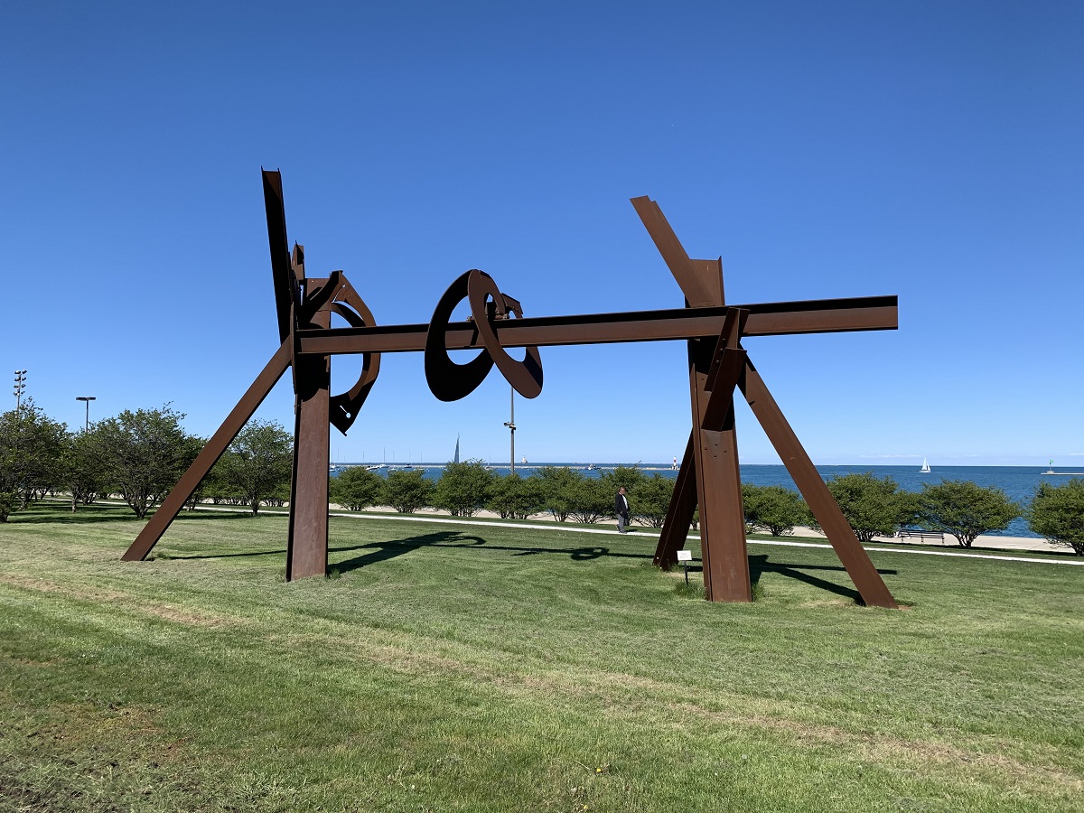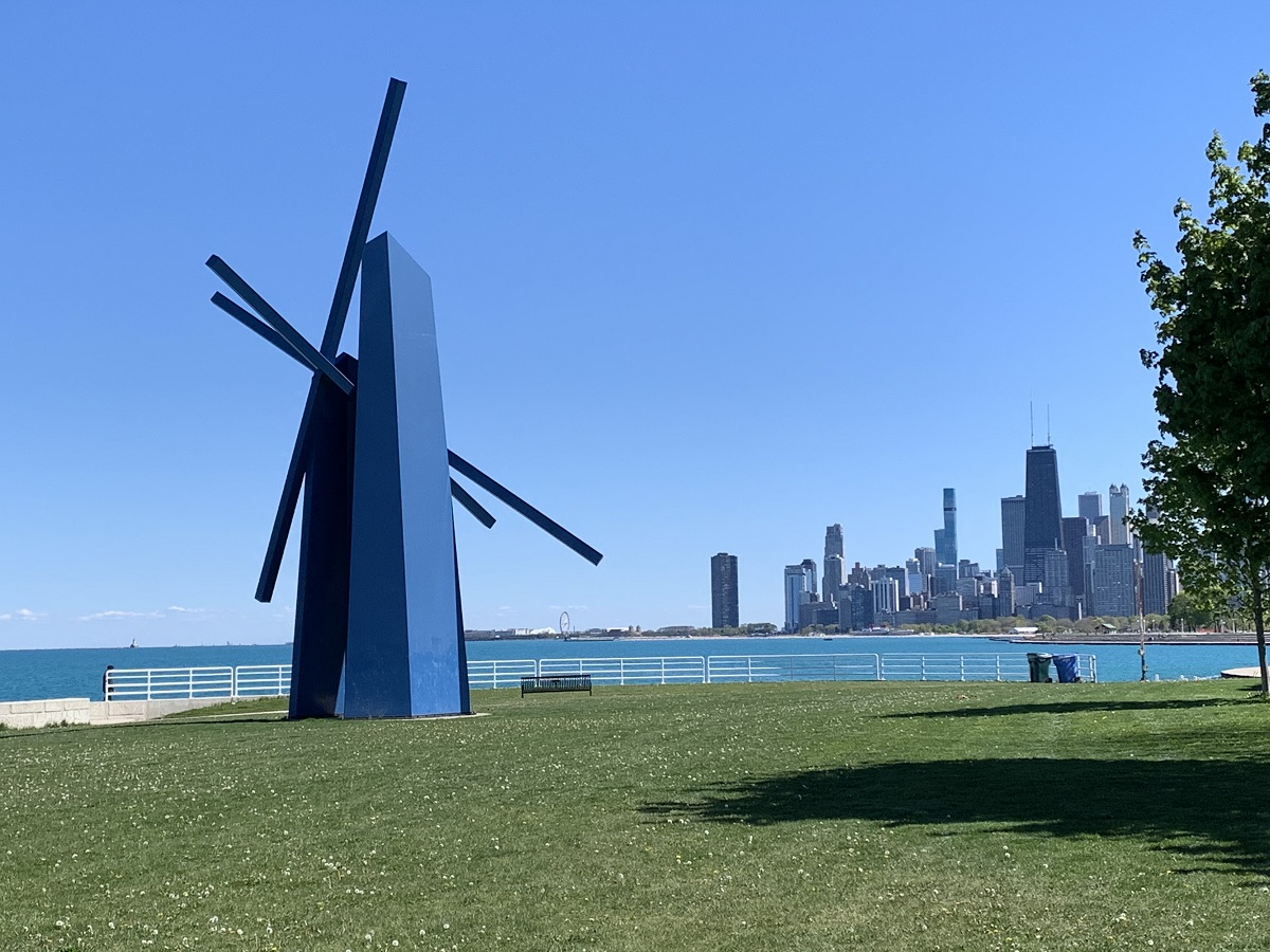Artwork north of Fullerton with Navy Pier, Lake Point Tower, other tall condos and Hancock