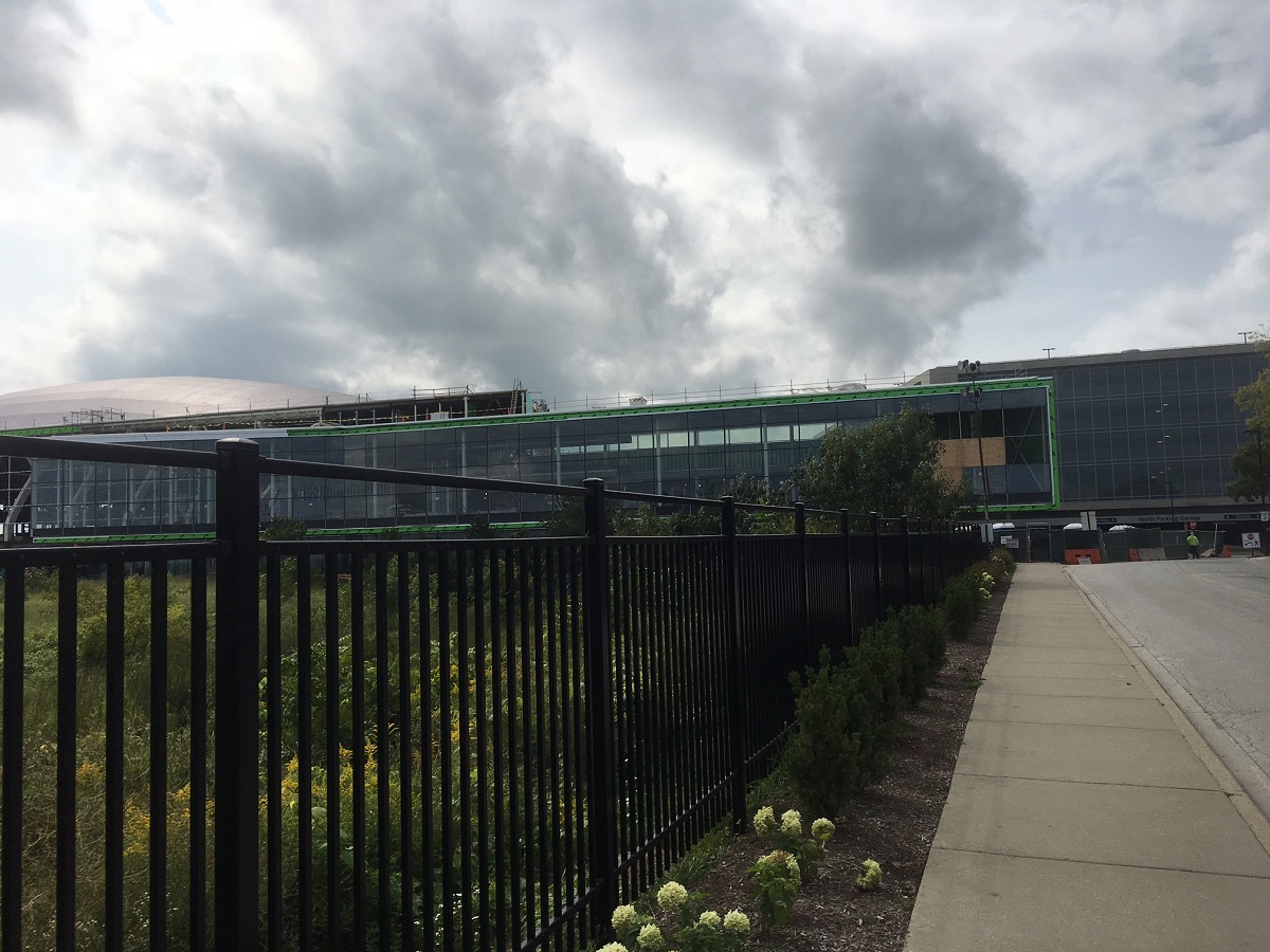 Looking south to new building and the new Northwestern Field Hockey playing field