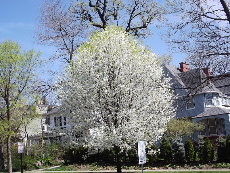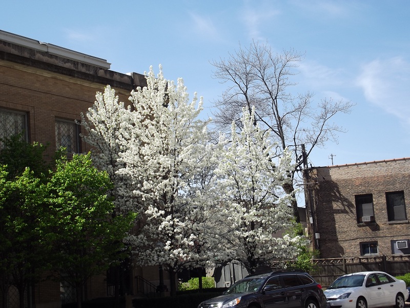 Crabapple tree (getting green on top) at Sheridan and Grove