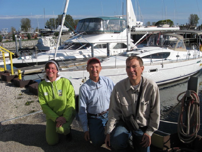 Nancy, Bill, and Andy with our delivered boat -- Victors Valiant