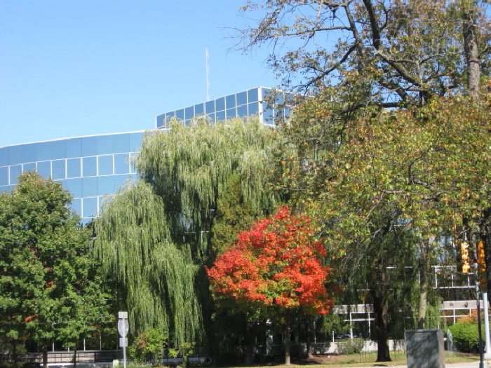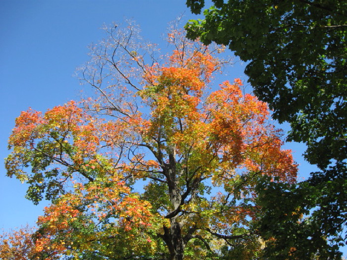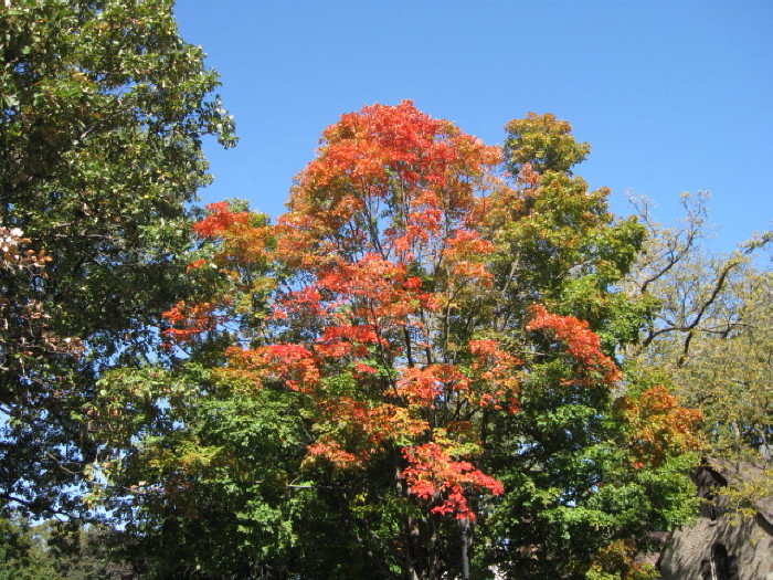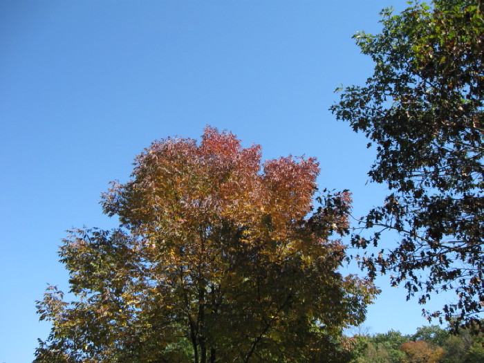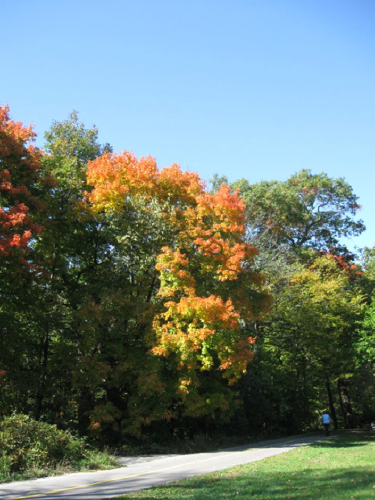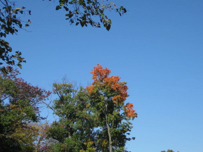 Beautiful early colored leaves as Andy bikes out to Bill's