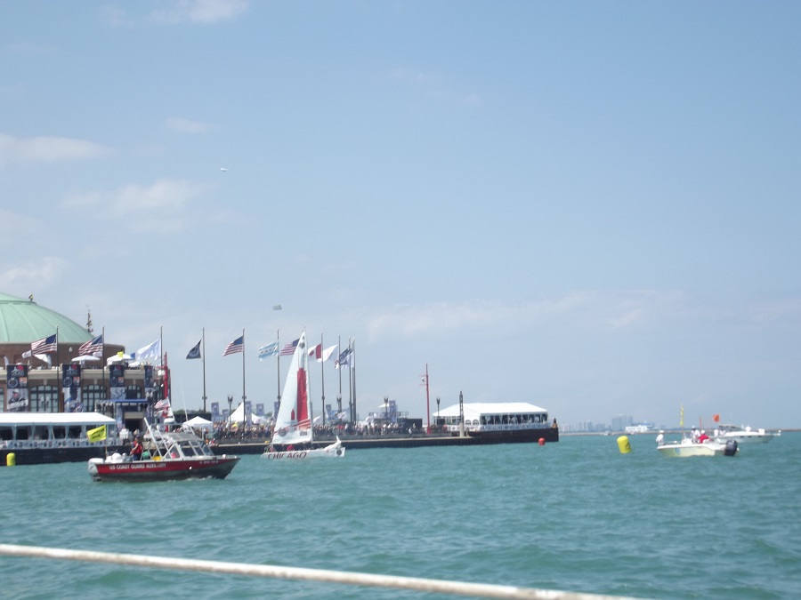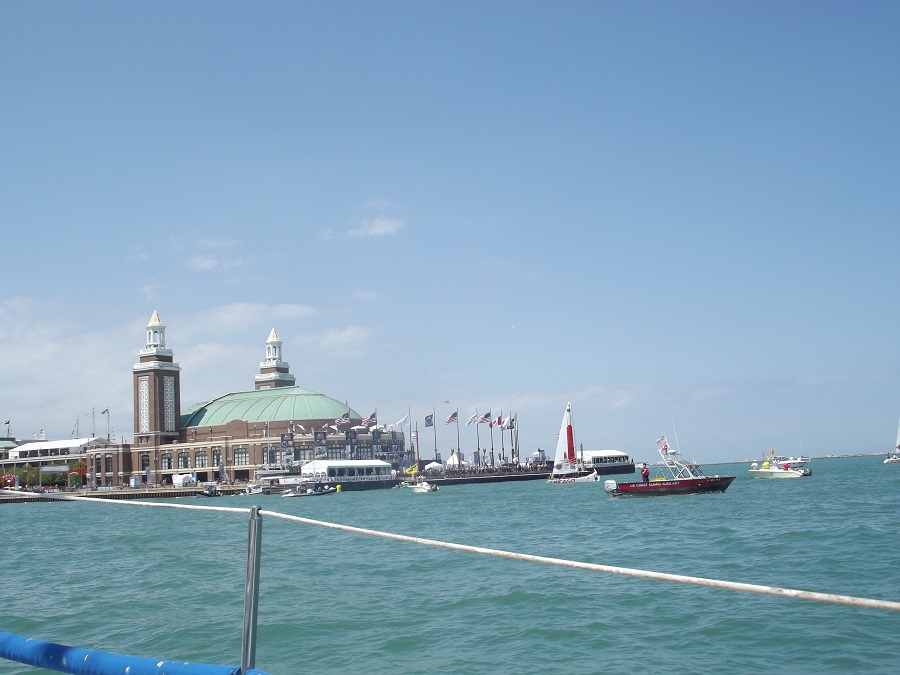 Lake Point Tower, two huge power passenger cruise ships, and a little of Navy Pier