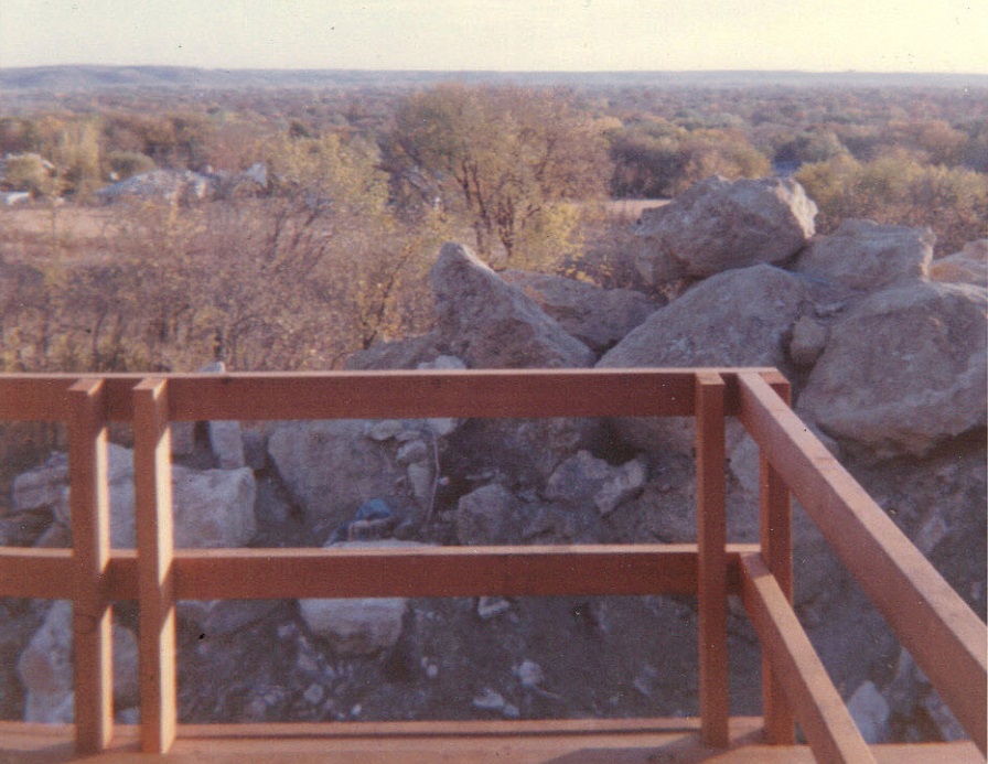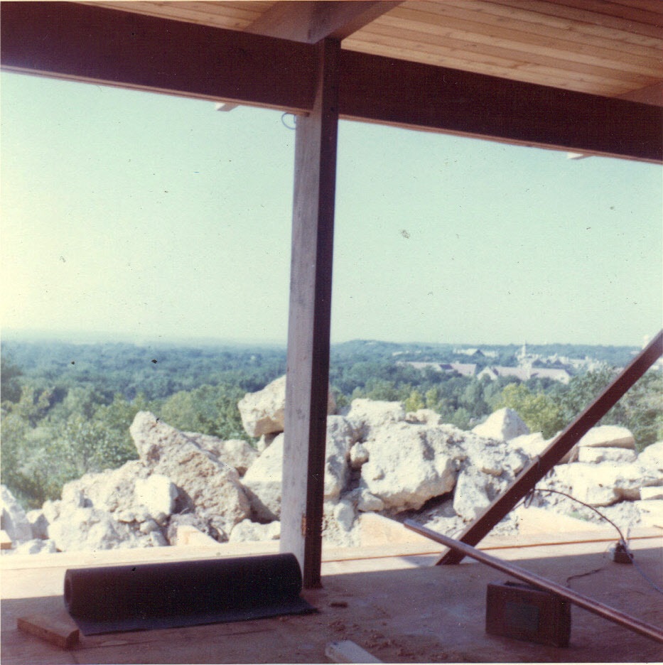 New house construction -- showing hill on horizon over 30 miles away from main floor with balcony -- fall, 1963
