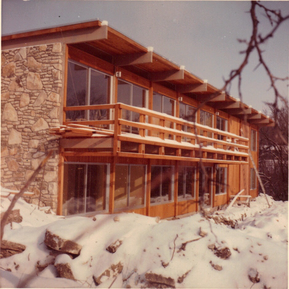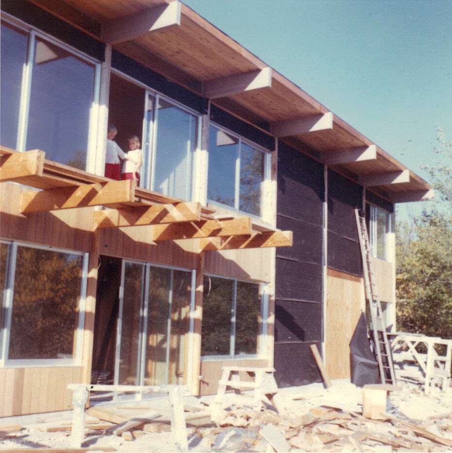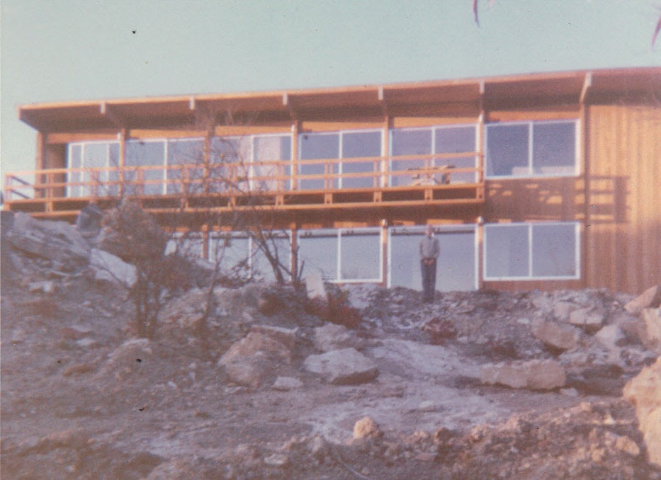 New house construction -- Andy with all glass doors and windows plus balcony on south side -- fall, 1963
