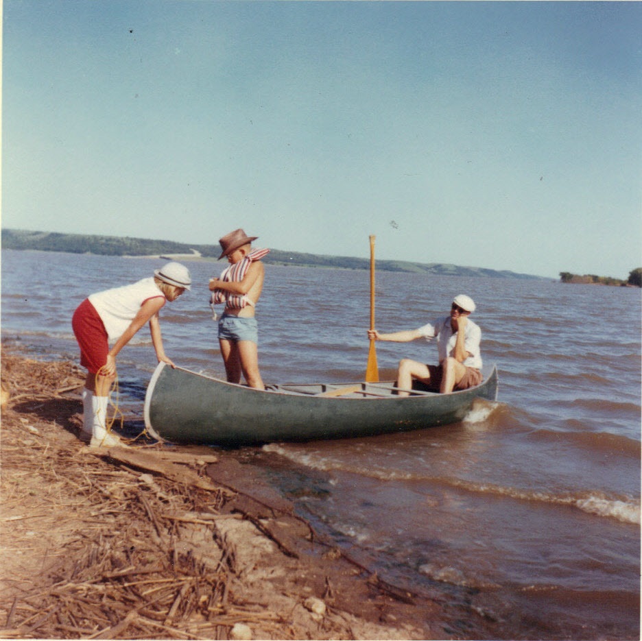 Carol, Andy, Dad canoeing on Tuttle Creek Reservoir -- summer, 1963