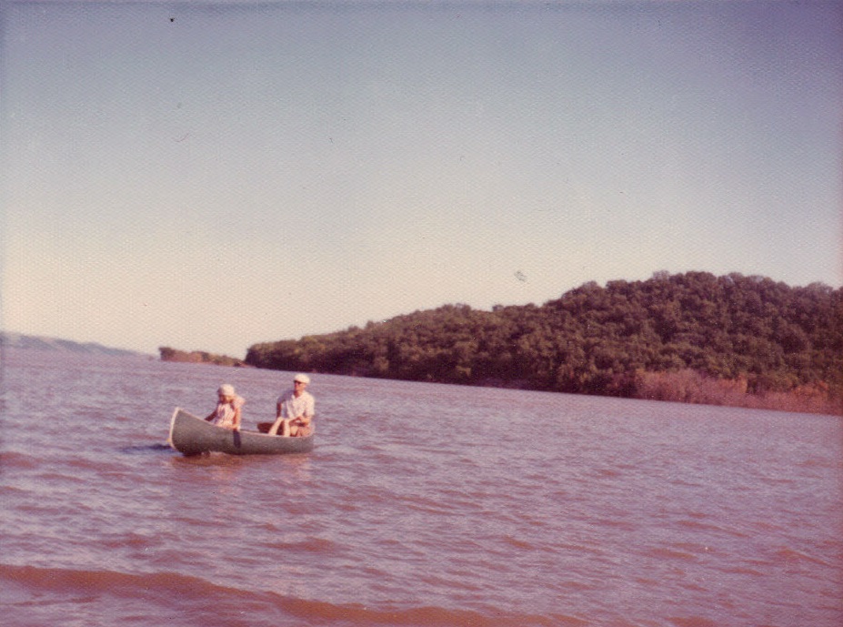 Dorothy, Dad canoeing on Tuttle Creek Reservoir -- summer, 1963