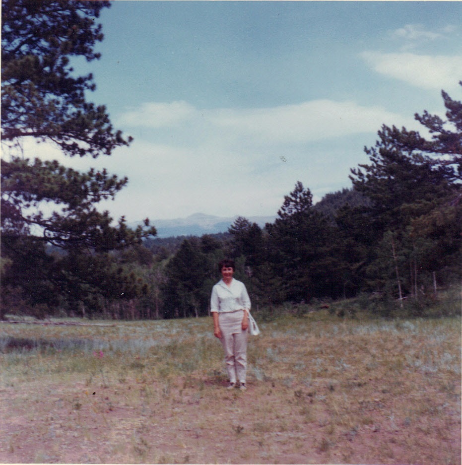 Mom, Pikes Peak from High Trails Ranch, Colorado -- summer, 1964