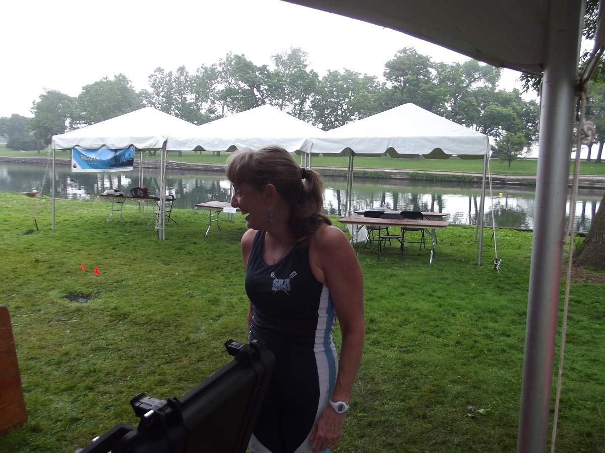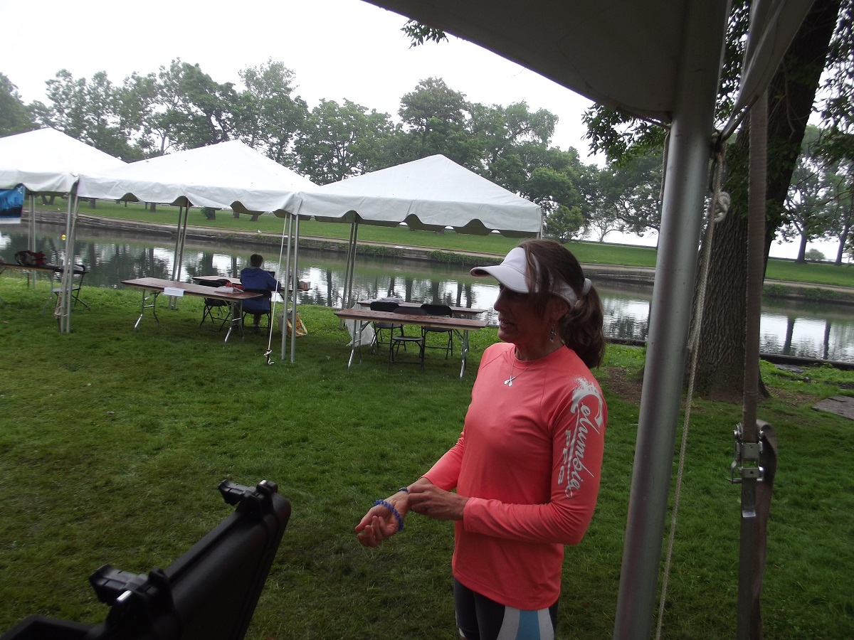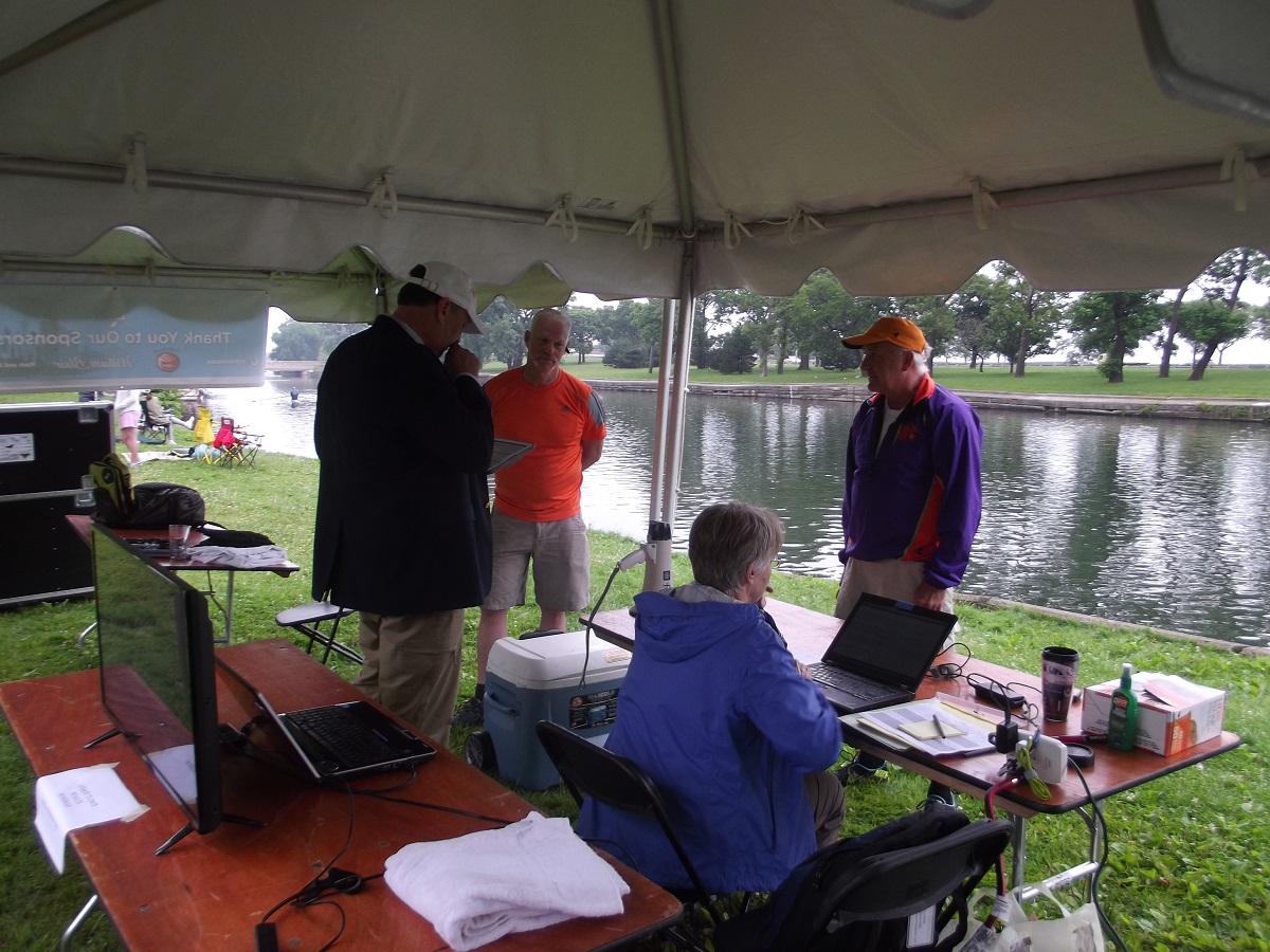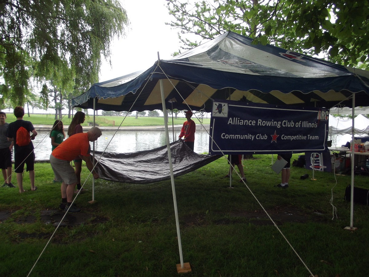 Brian Easter (orange T shirt) and others putting up Alliance Rowing Club (ARC) big tent