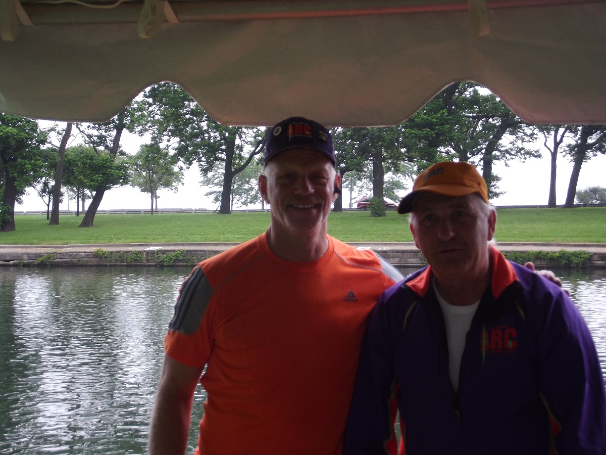 Brian and Ron Boi (purple jacket with orange cap) by main results tent