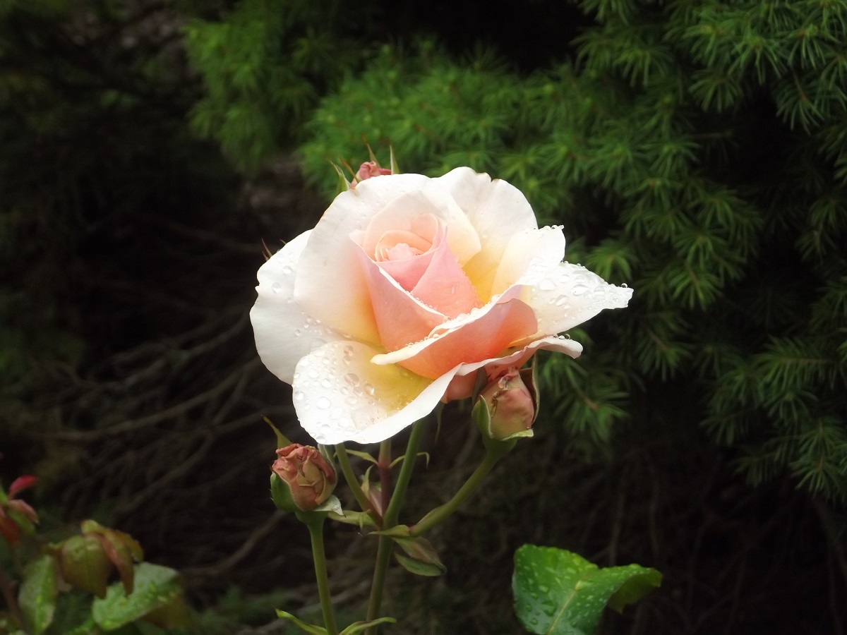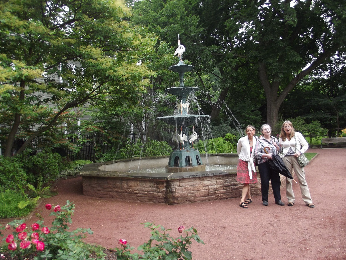 Dorothy, Laurie, and Carol in Rose Garden at fountain