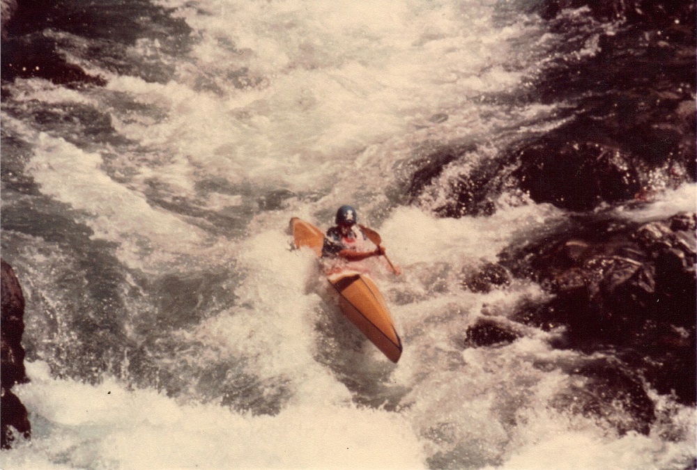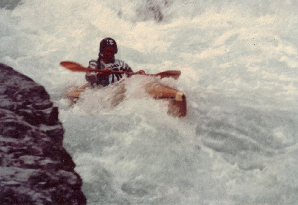 Carol flatwater kayaking with friends -- 1980