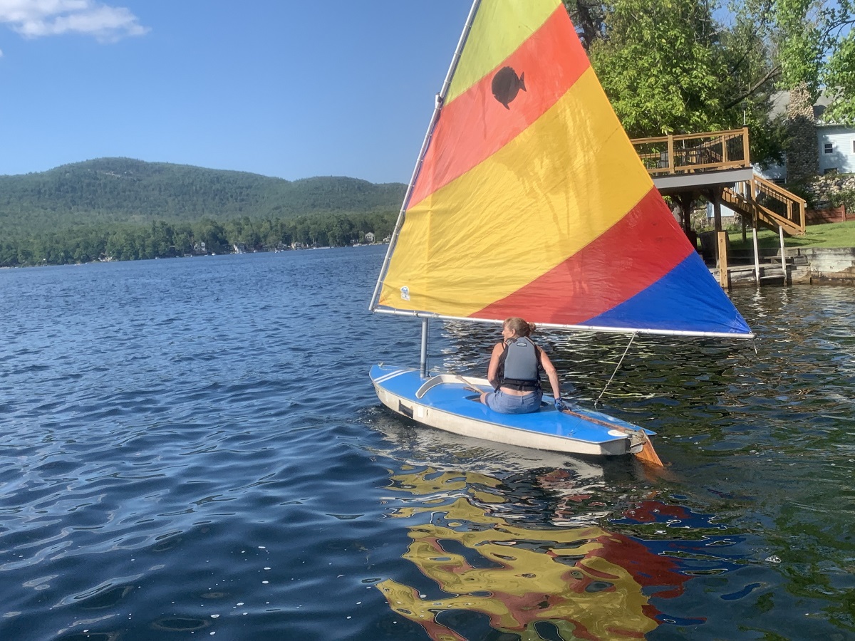 Carol sailing the Sunfish