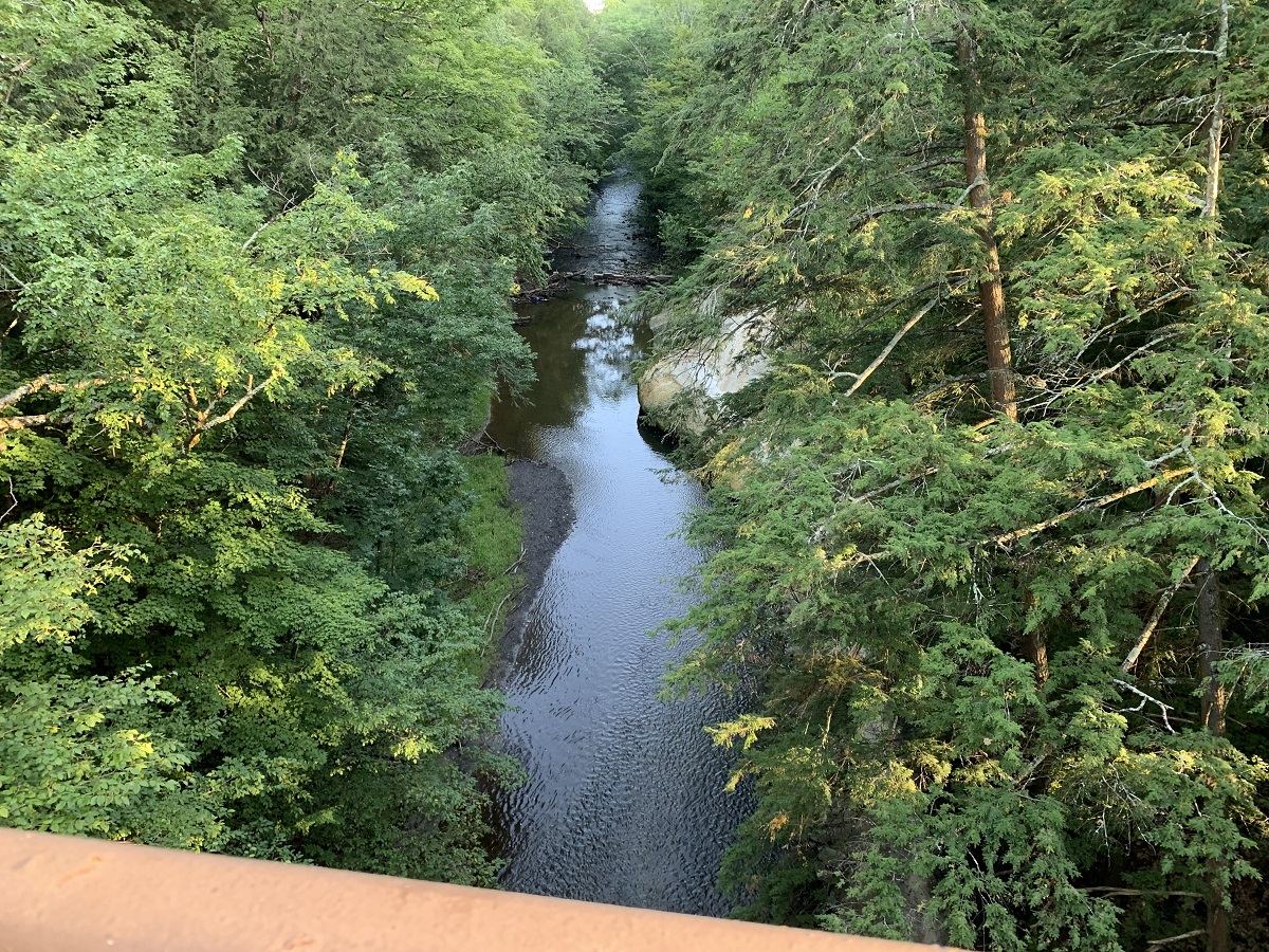 Looking down at creek from main bridge into SPAC