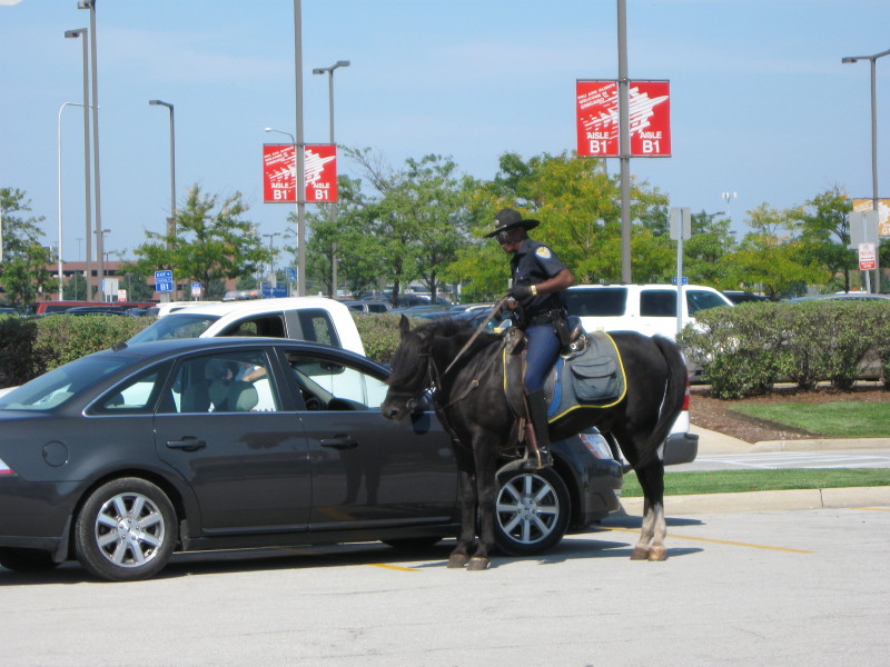 After flying home ot O'Hare, a mounted policeman at remote parking lot where bus picked me up -- 9/10/2009