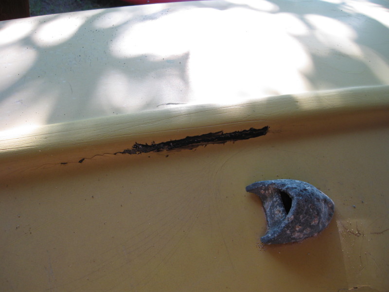A new rupture in the hull which Carol fixed with black plastic -- 9/5/09