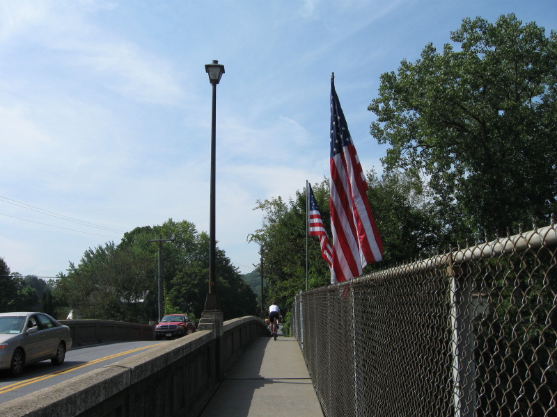 Jim biking accross bridge