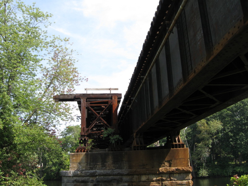 Rail bridge originally for two tracks with one track suddenly ending in the middle