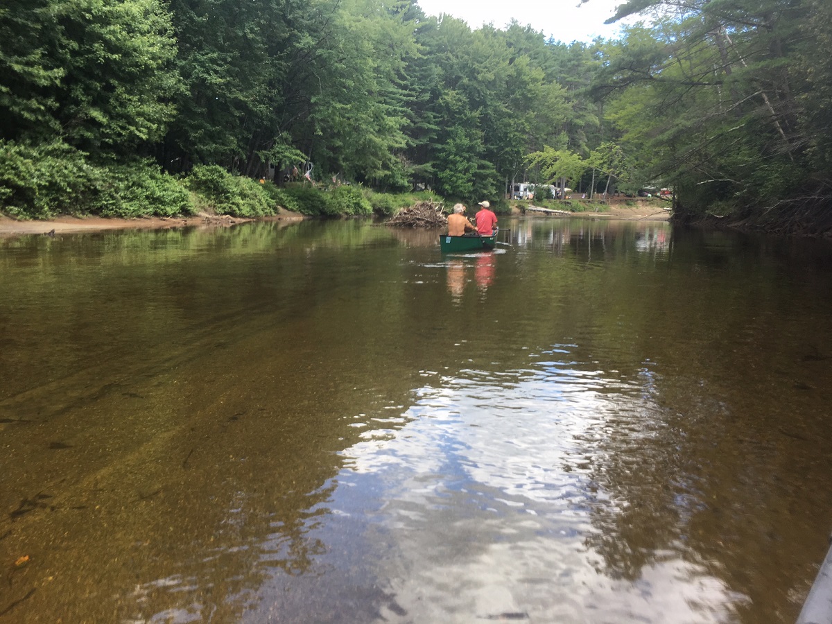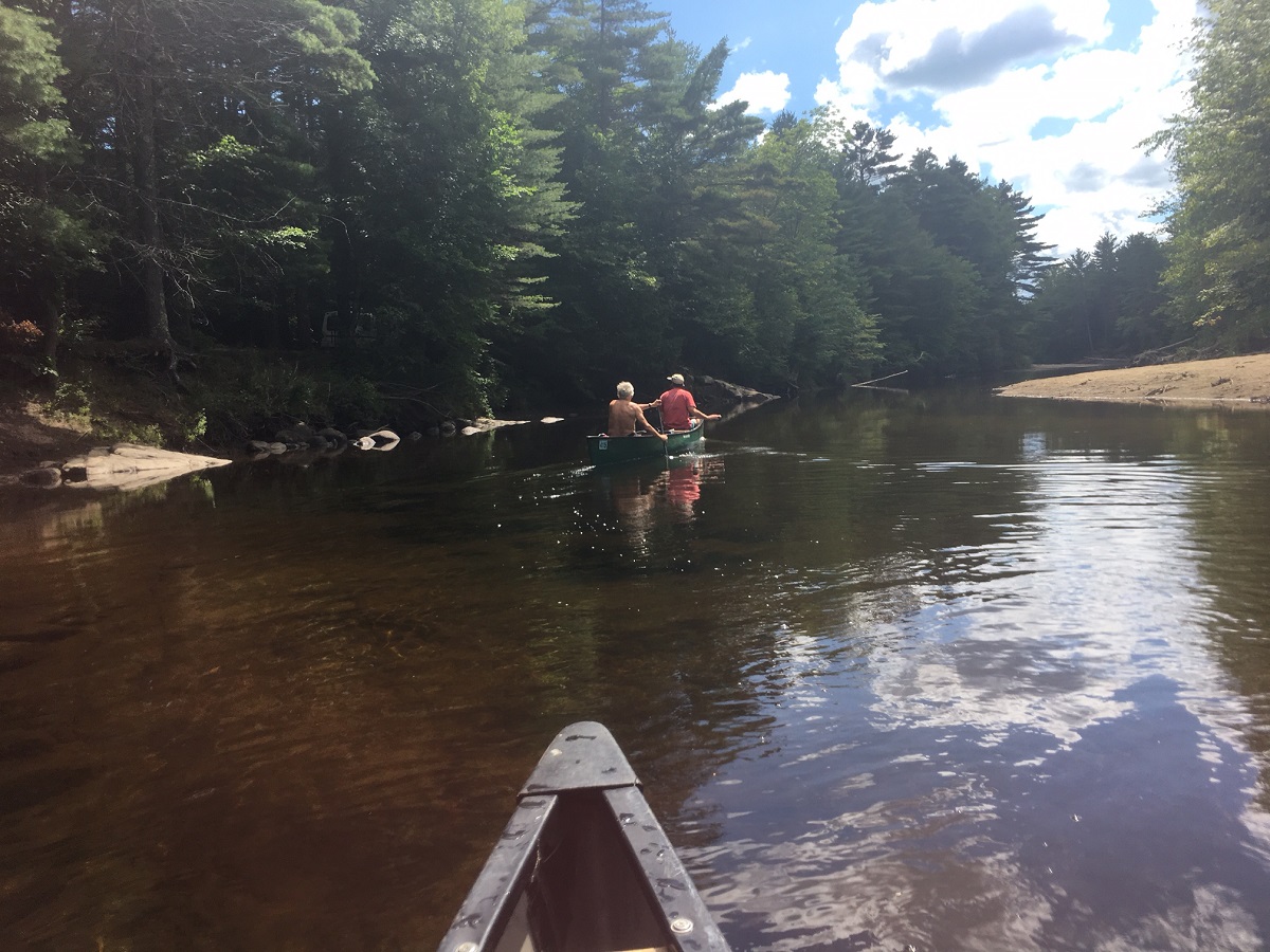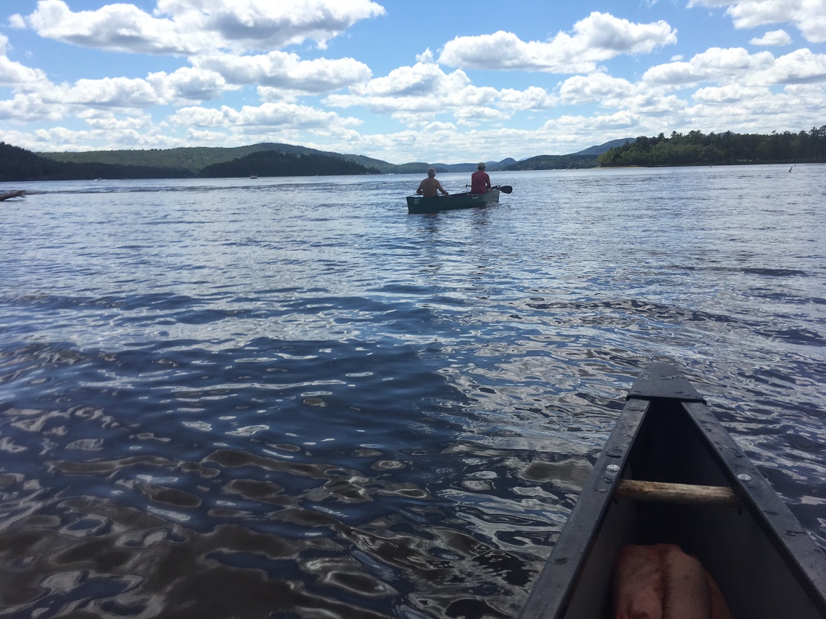 Jim and Chris on Schroon Lake -- all these canoing photos were taken through the clear waterproof and floating cover for Andy's I-phone