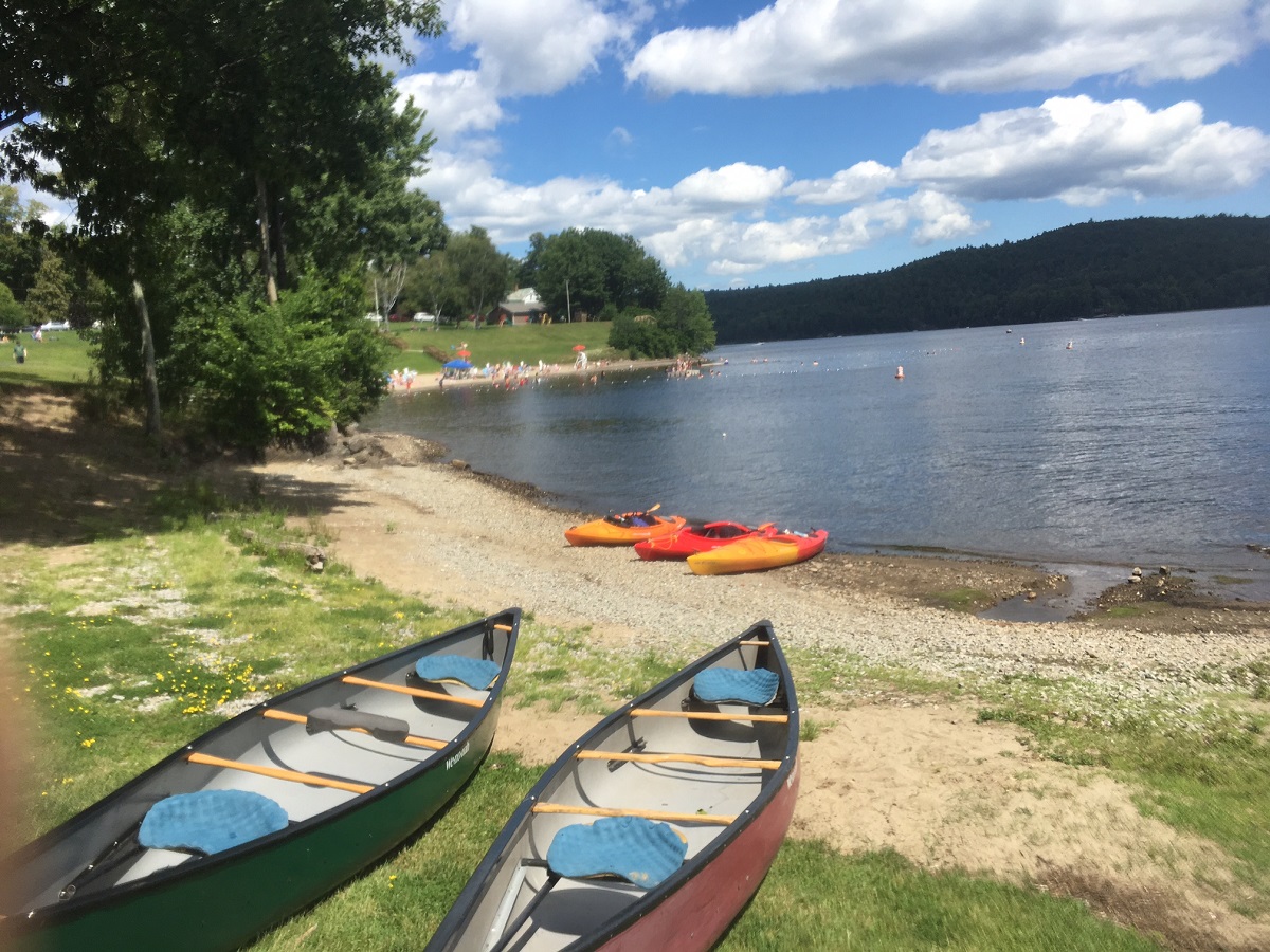 The 2 canoes at the beach whileJim and Andy wait for Carol and Chris to shuttle the cars back from the beginning.