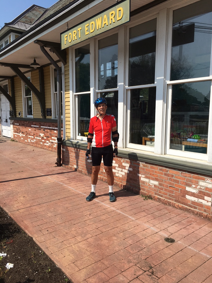 Andy at Fort Edward train station after biking there with Jim -- Thursday 8/10/17