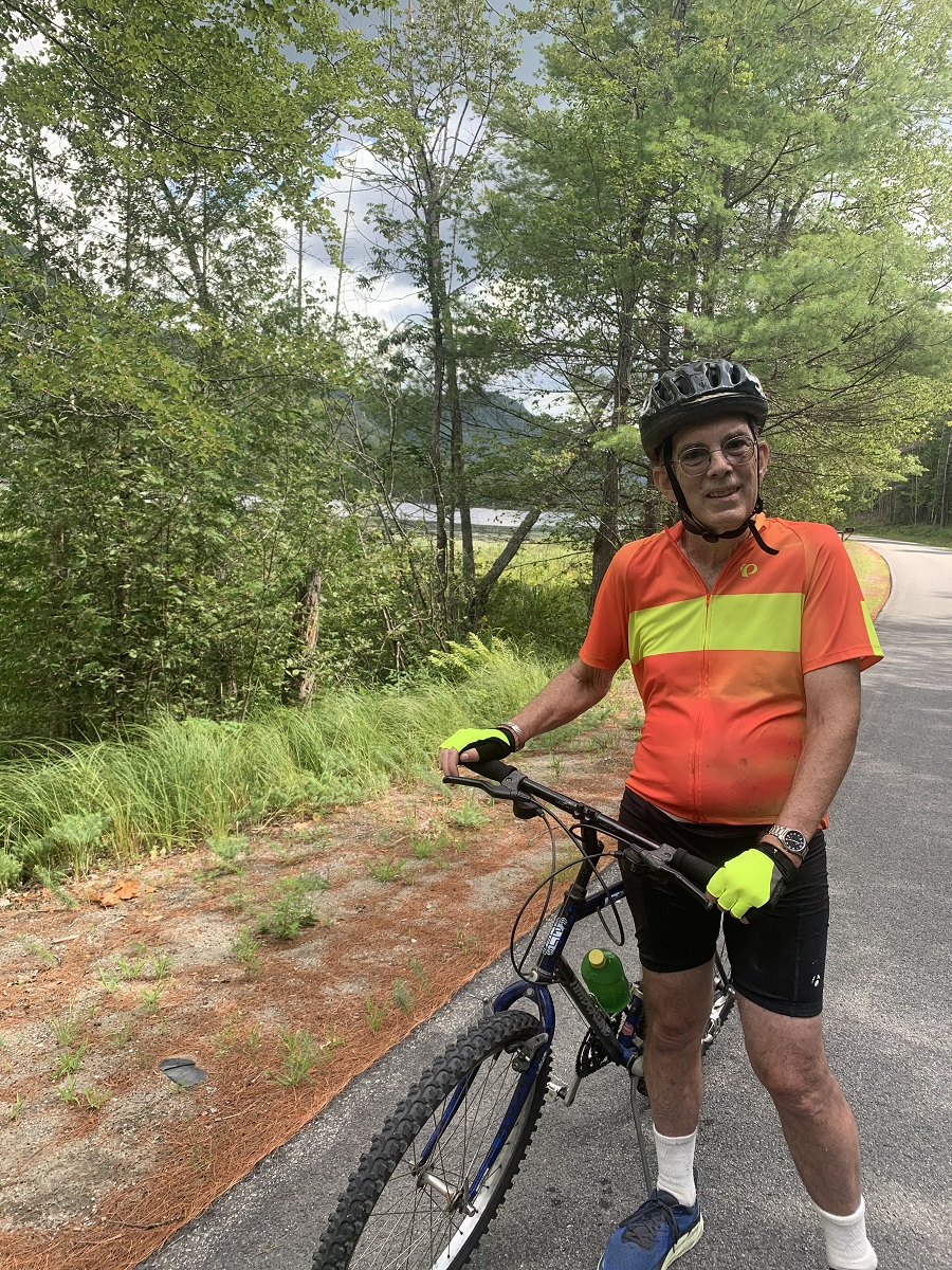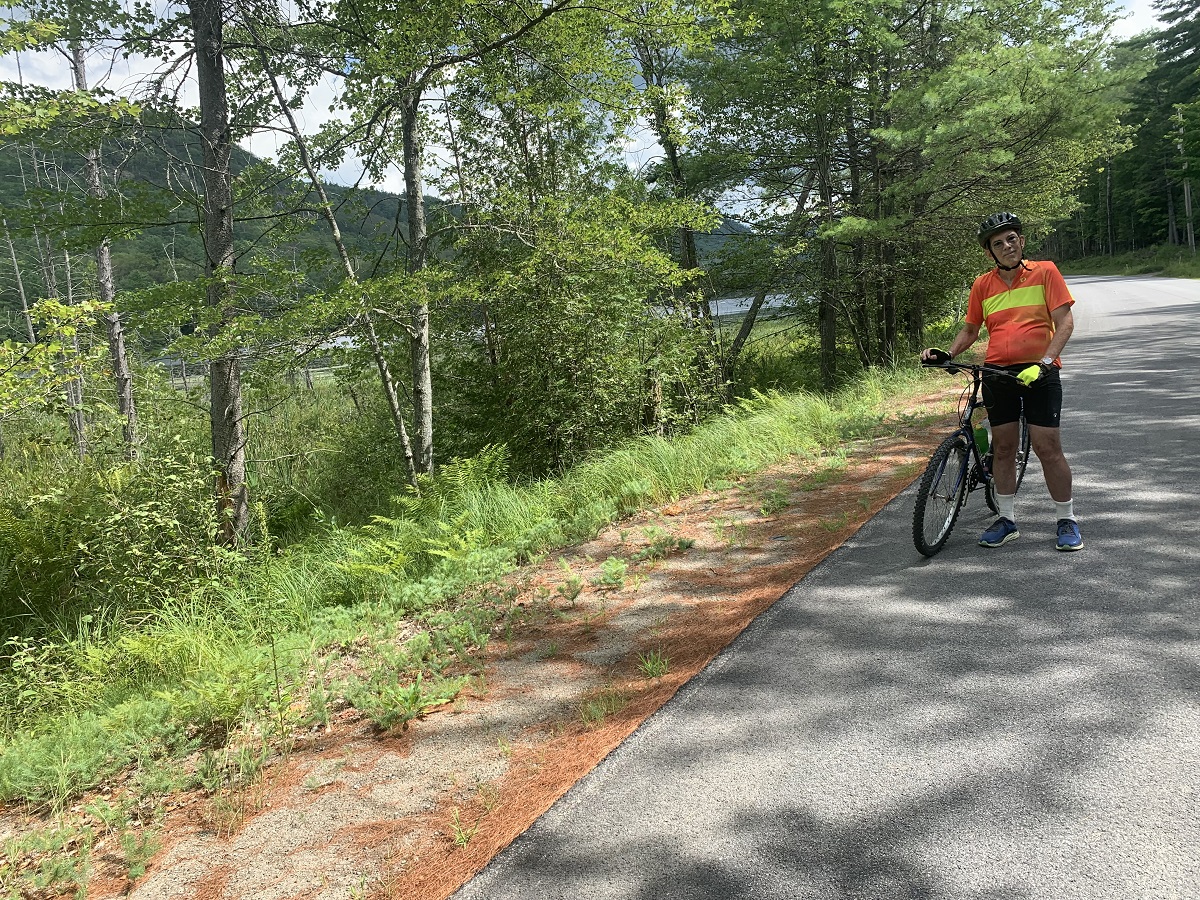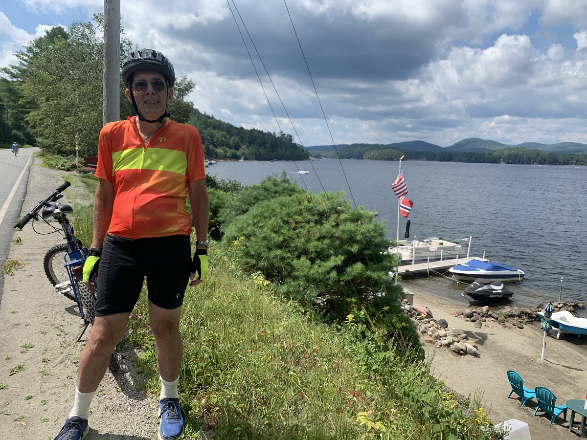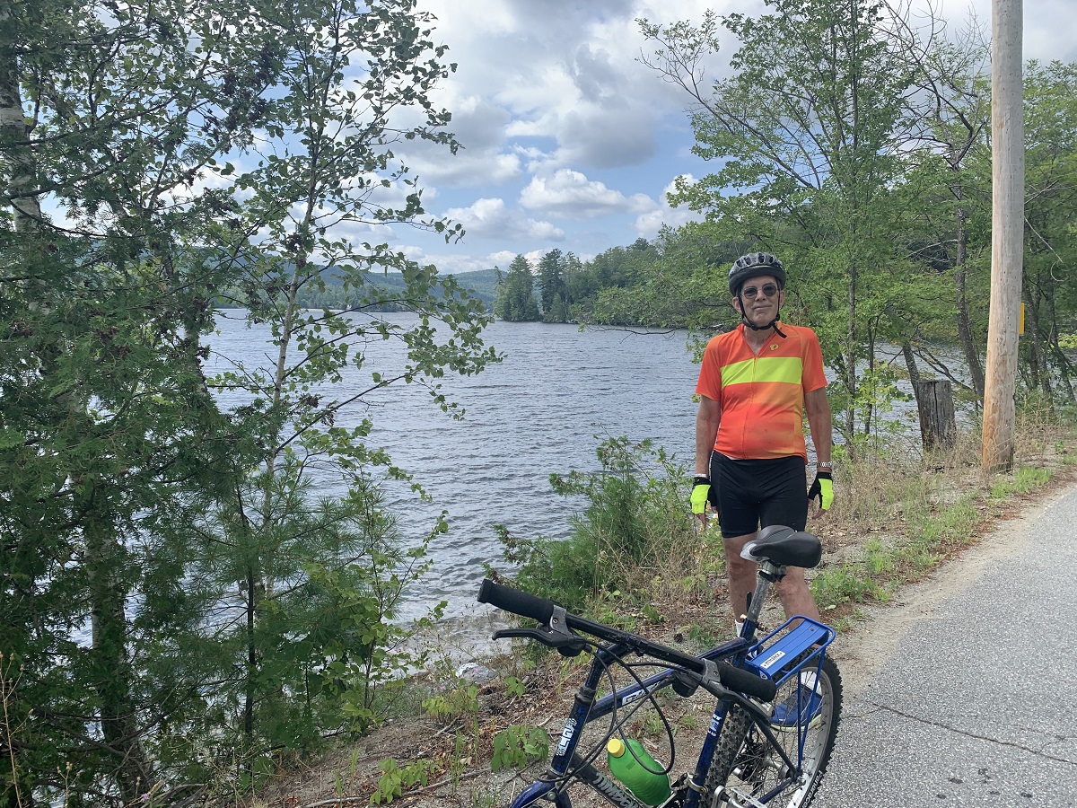 Three Lakes Bicycle ride -- Andy by Schroon Lake