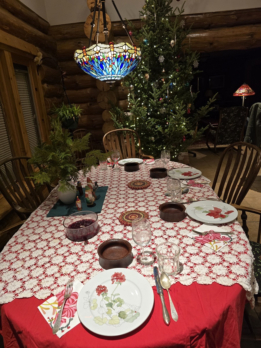Elegant Christmas table with Christmas tree