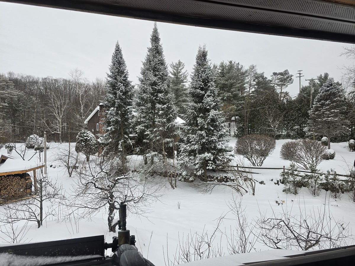 Snow trimmed trees looking southeast