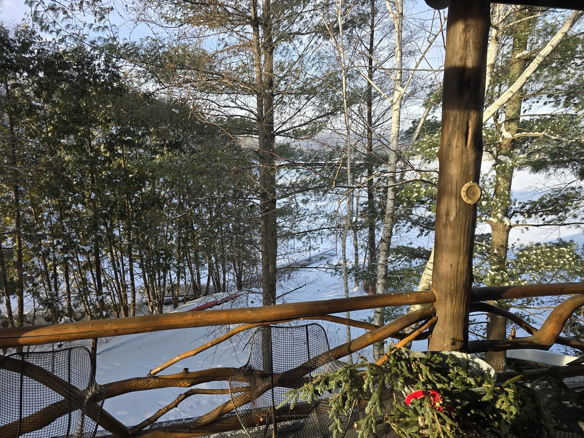 Jimmy's artistic balcony rail looking west over Glen Lake