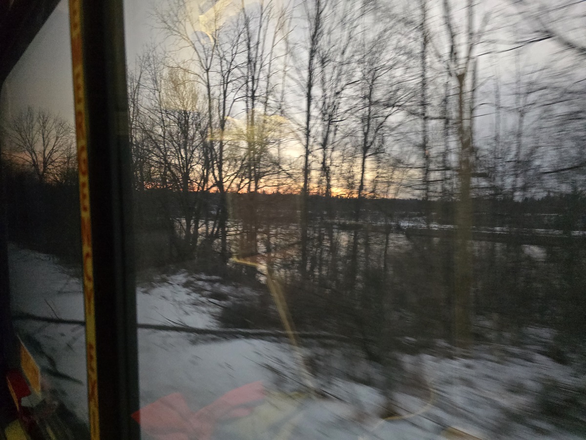 Sunrise from train -- Lakeshore Limited -- in motion