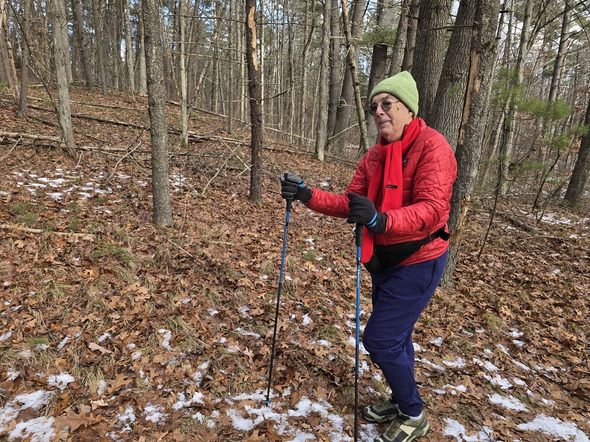 Andy walking with blue salking sticks