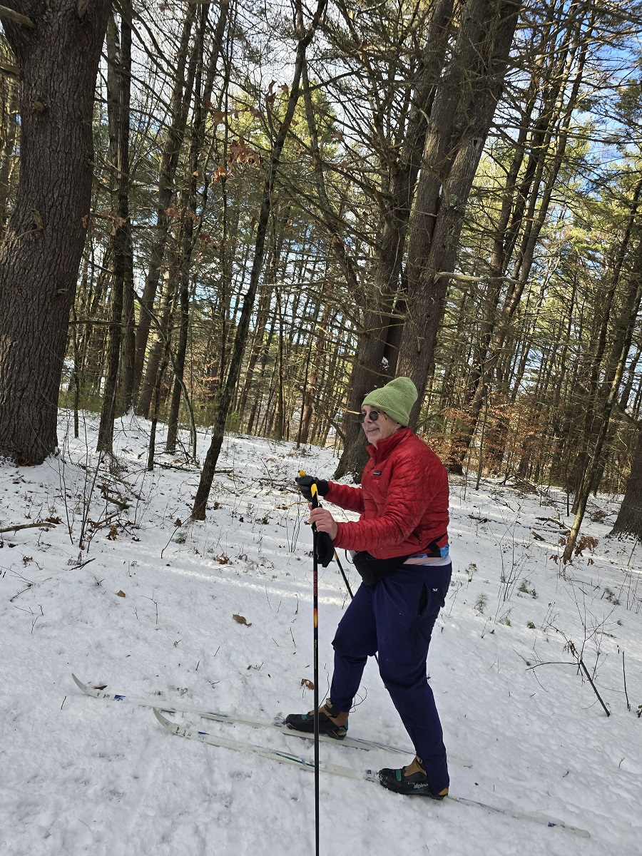Andy XC skiing on track near schools