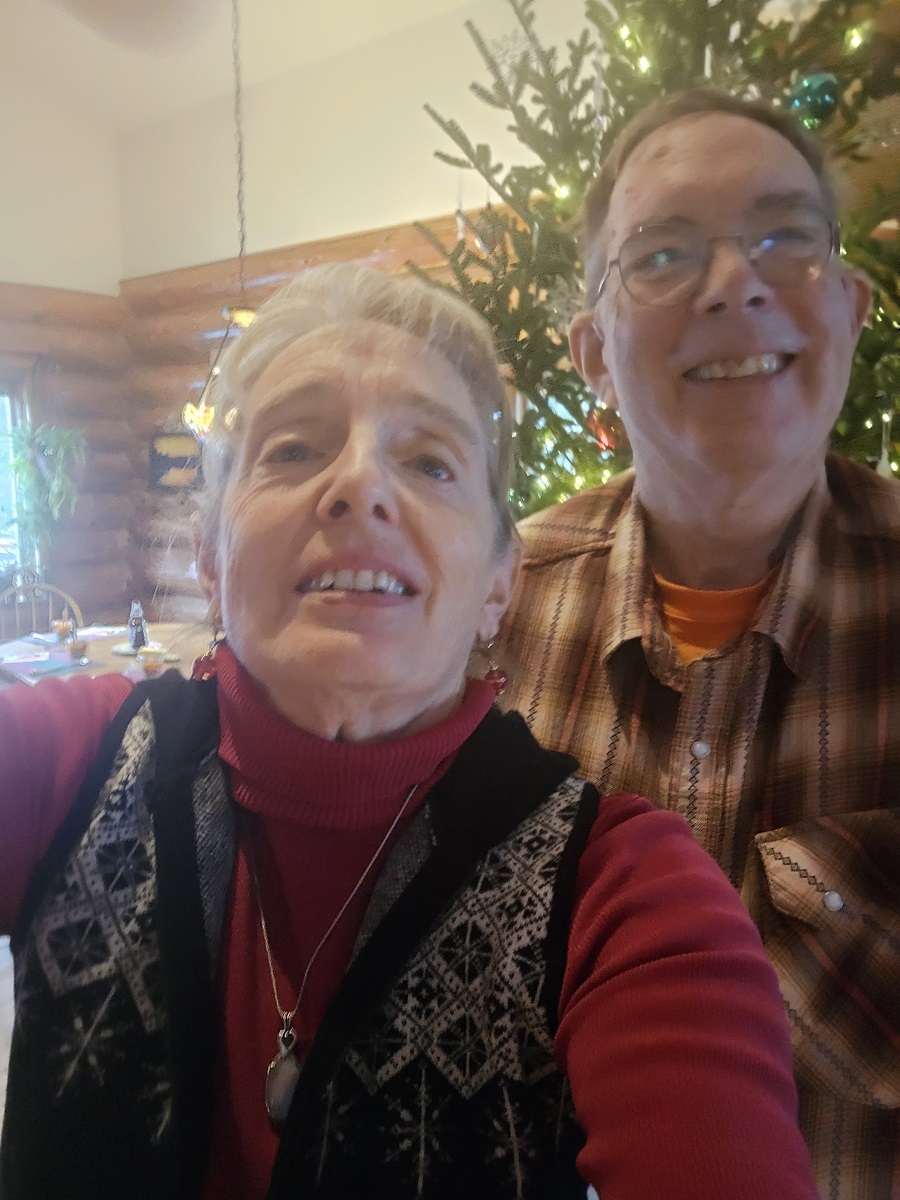 Carol and Andy w XMAS tree