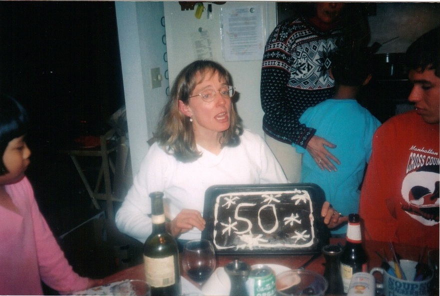 Tara, Carol with her 50th birthday cake, Dorothy, Duncan, Nate