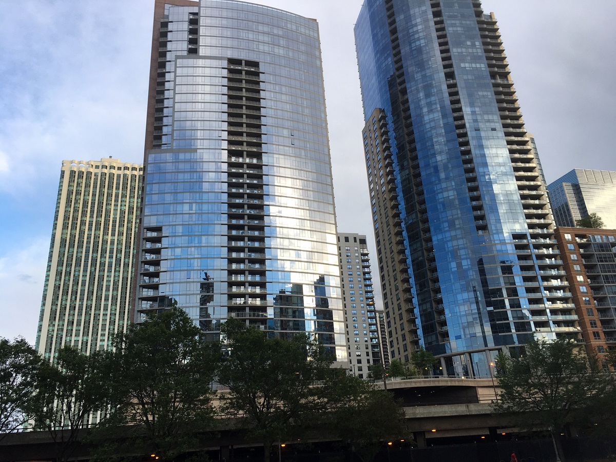 Condo buildings, top of the Hancock (with 2 antenas) and Lake Point Tower
