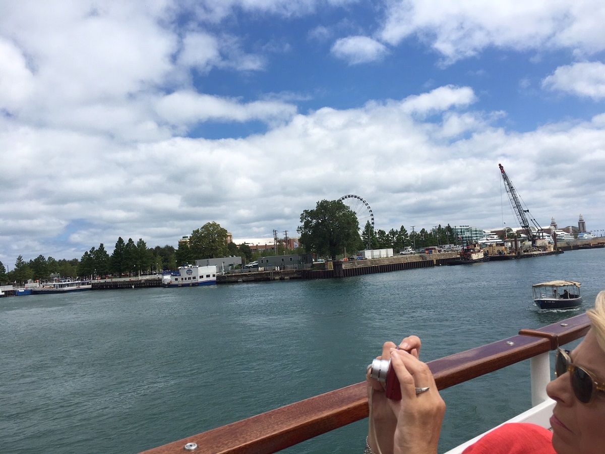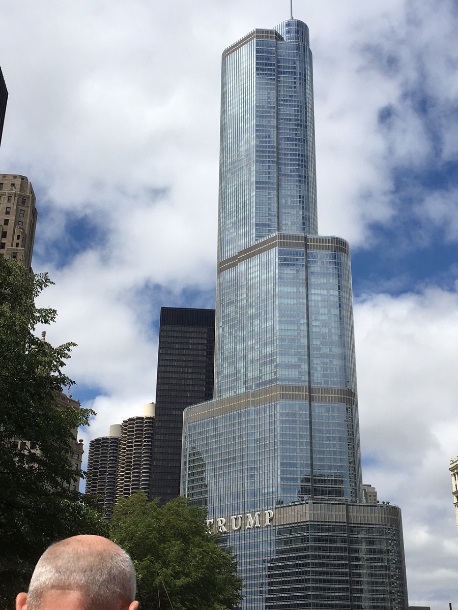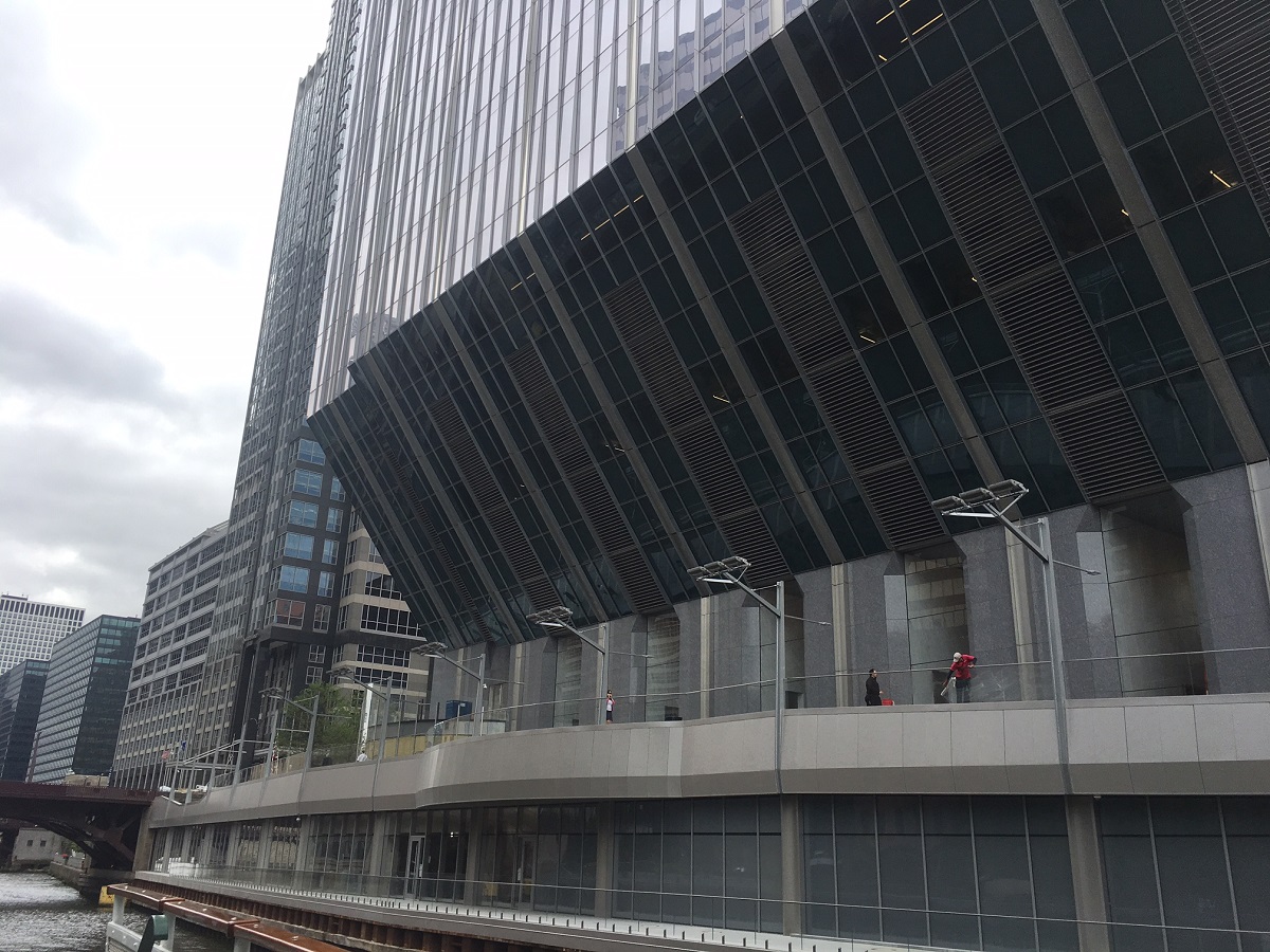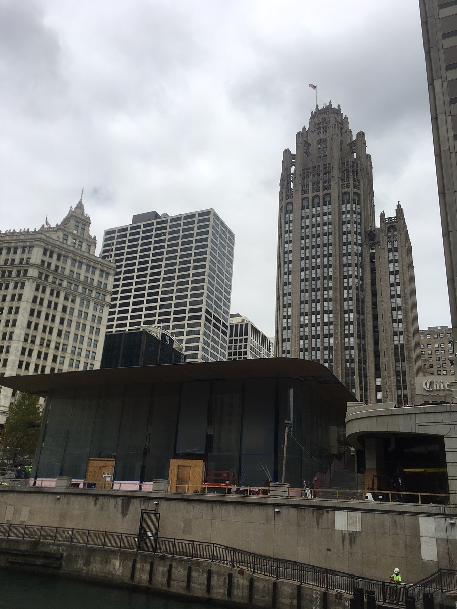 Tribune Tower and the new Apple building (who's roof looks like a mouse pad)