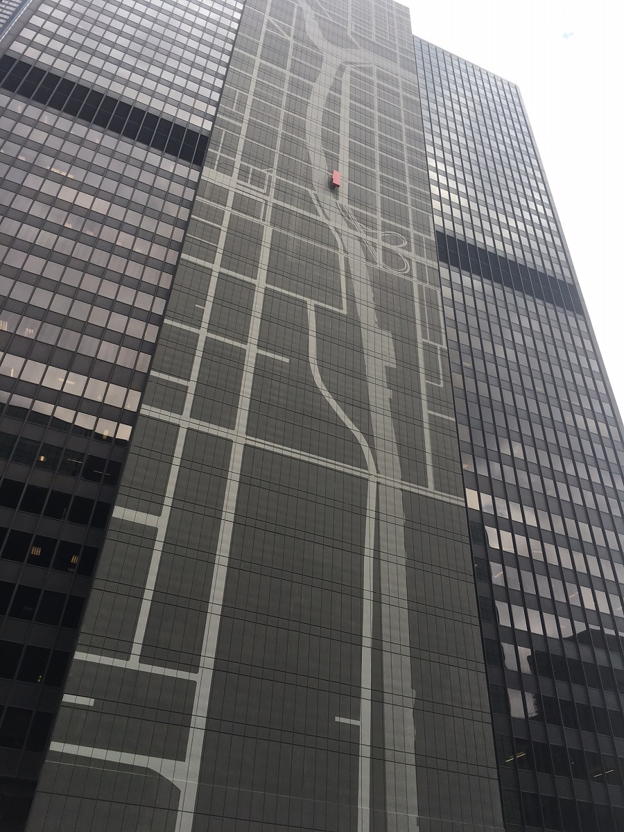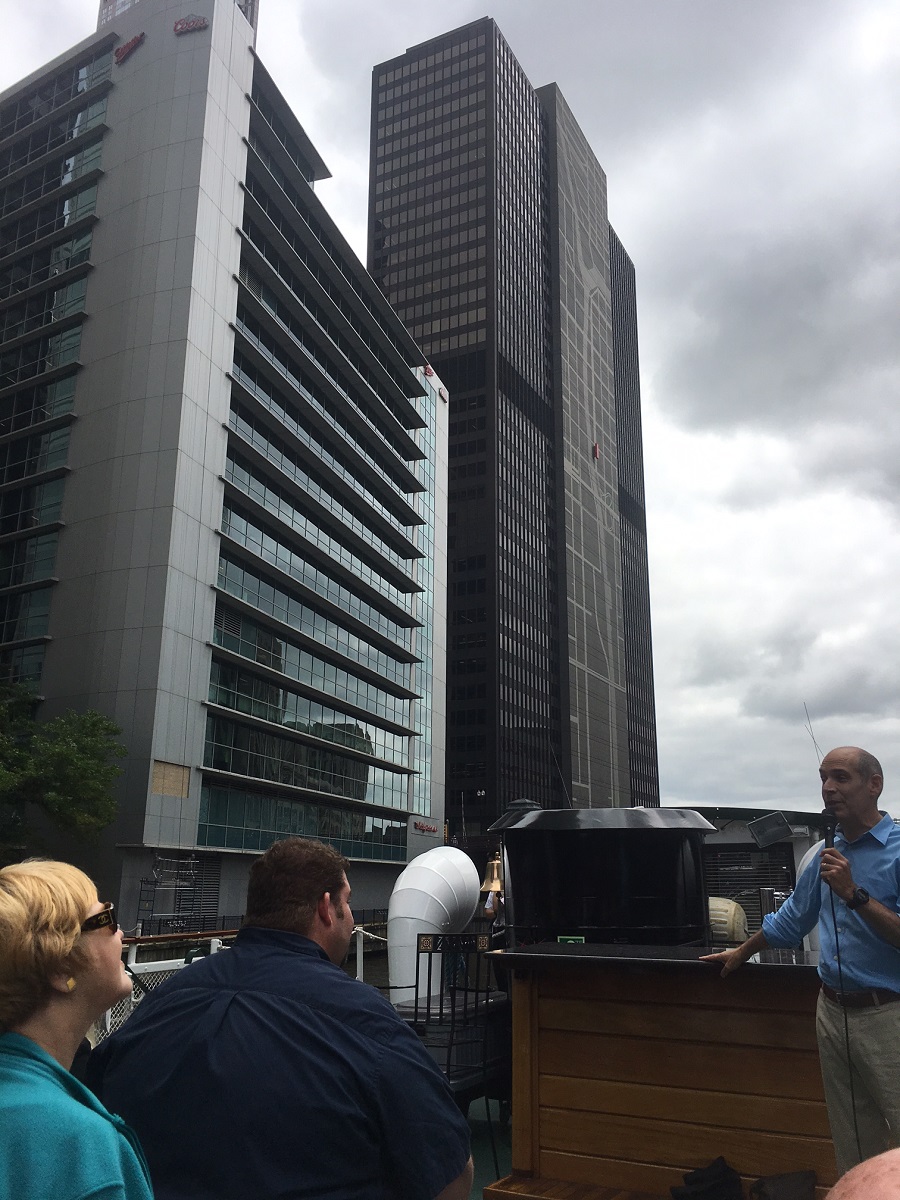 Geoffrey speaks to us as we go through this canyon of tall buildings