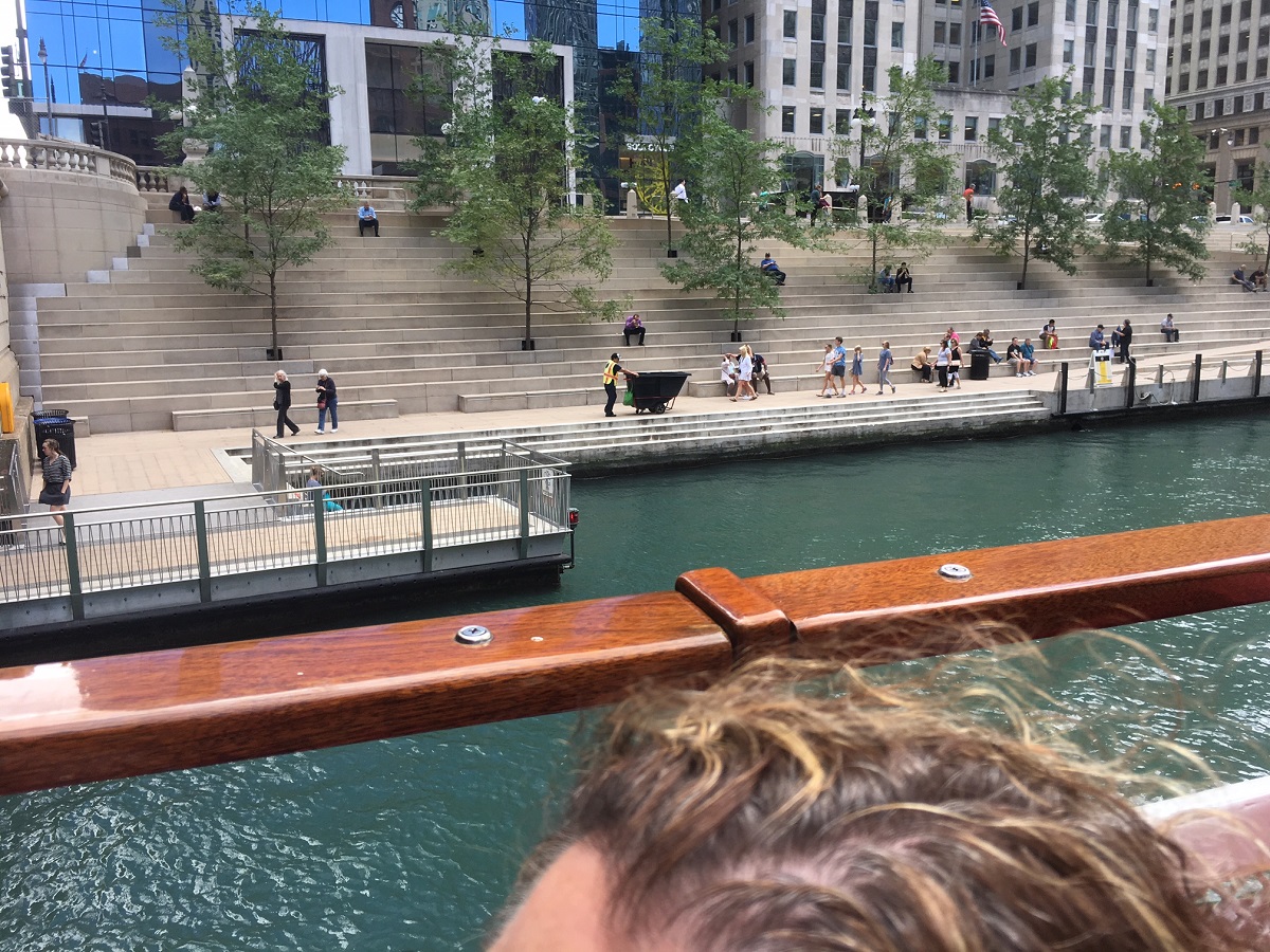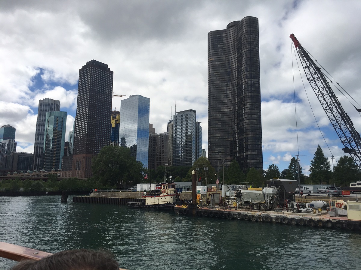Final shot from the boat tour of Navy Pier with the ferris wheel