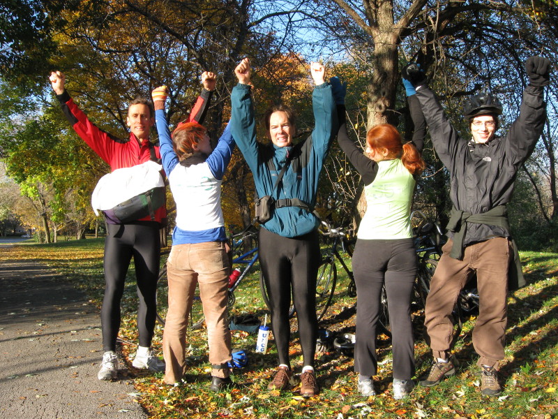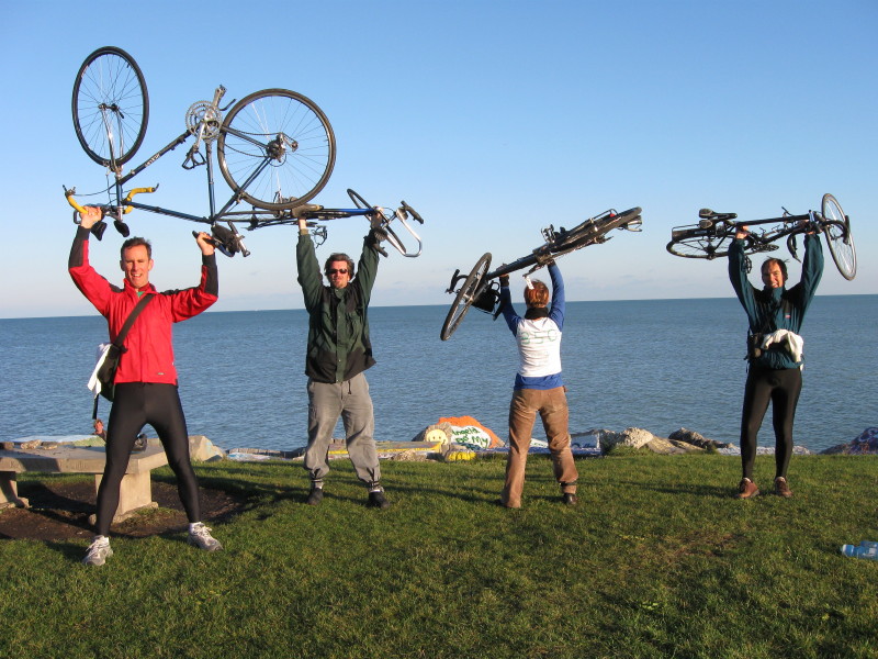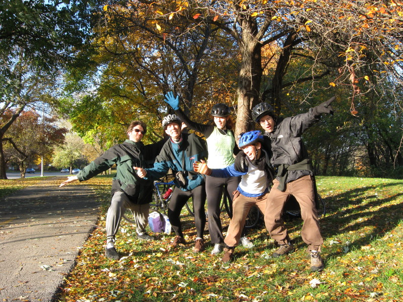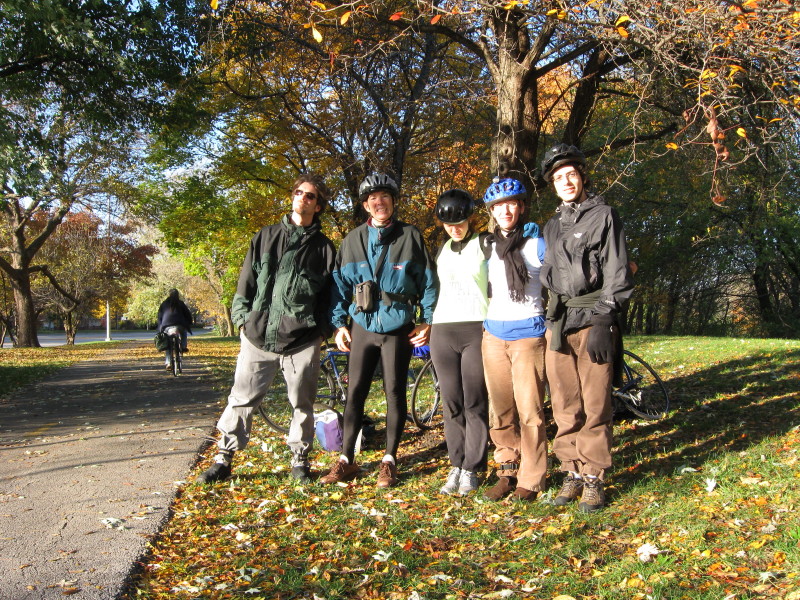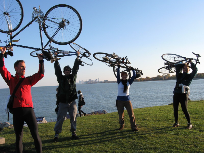 Mike, John, Laura, Andy with Lake Michigan on NU landfill at end of ride