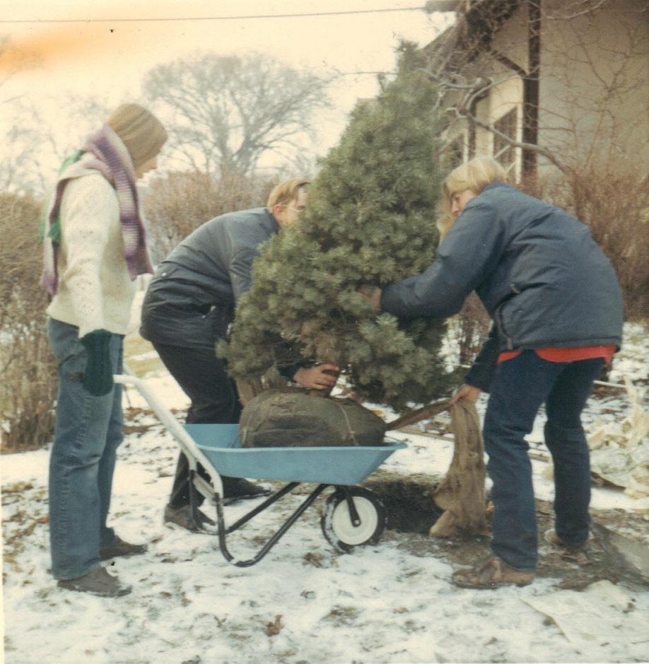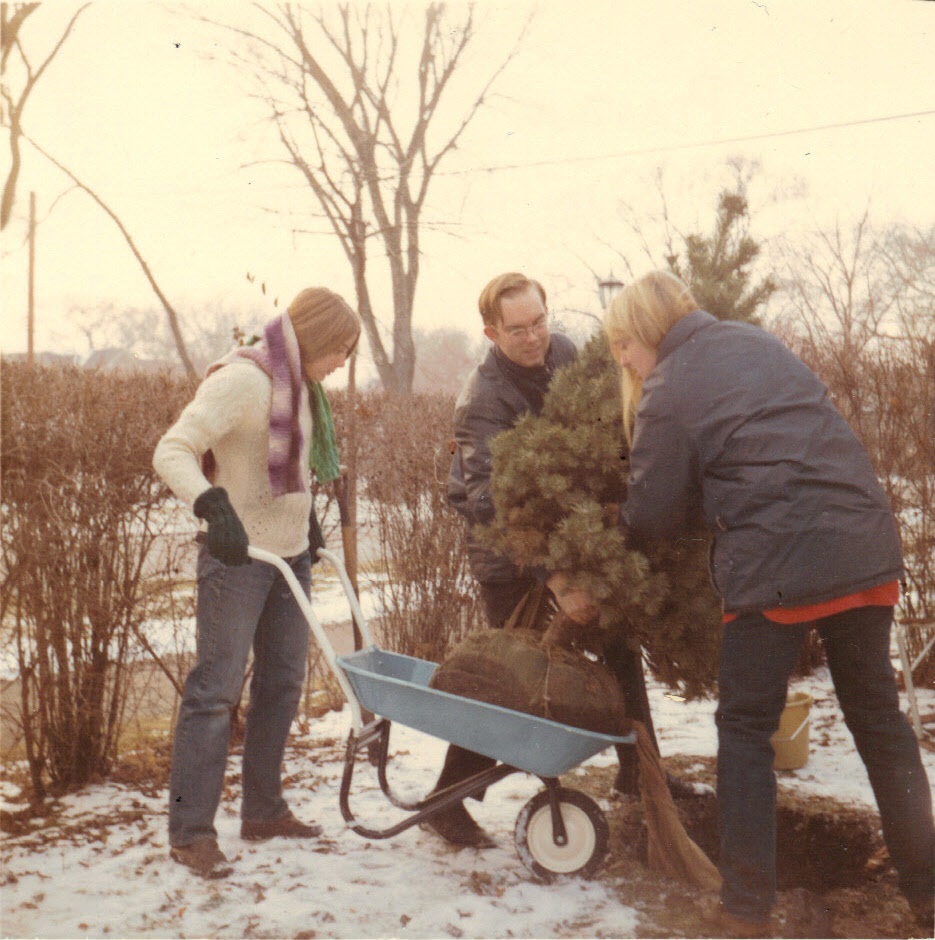 Dorothy, Carol and Andy planting Christmas tree