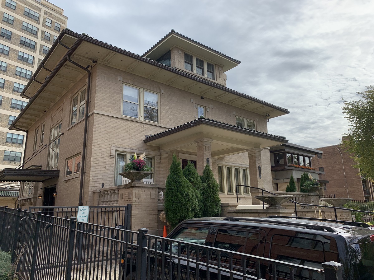 Frank Lloyd Write houses on Sheridan Road with tall brown grass