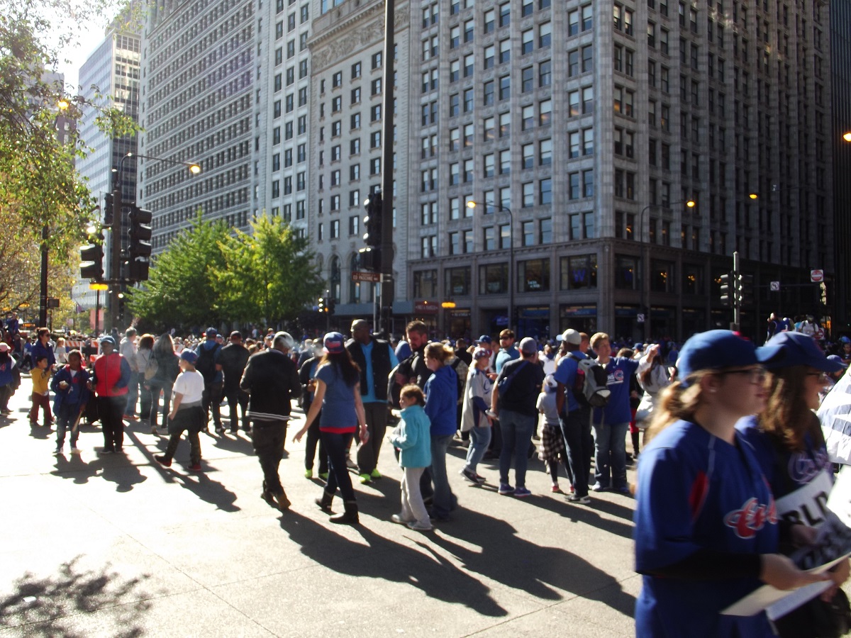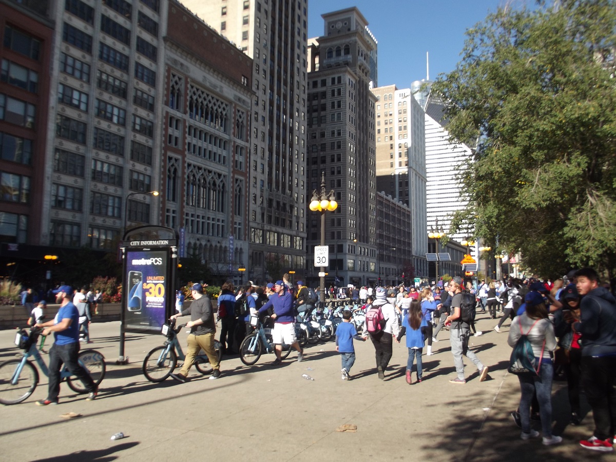 Many Cubs fans spreading out from Grand Park celebration along Michigan Avenue