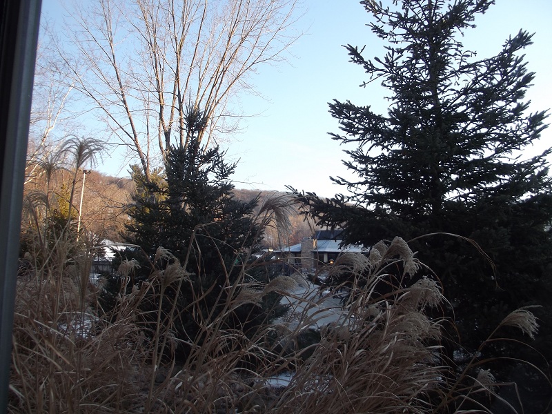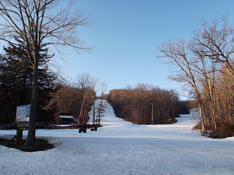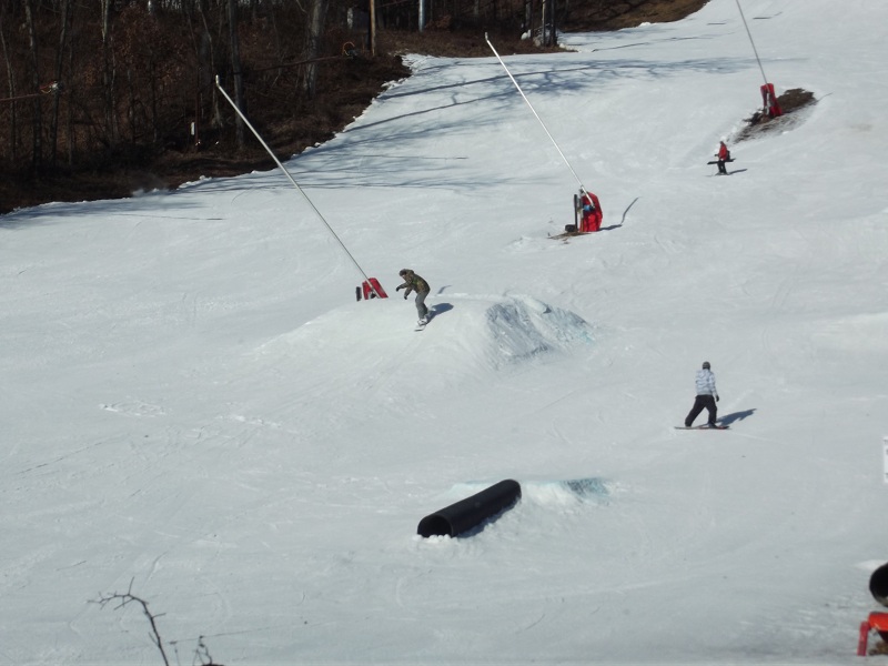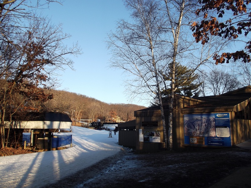 Kirk and Lisa riding up double chair ahead of me at steepest point with rocks