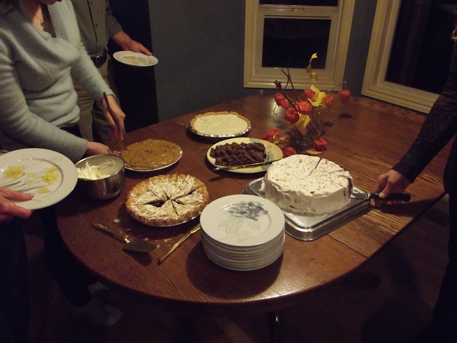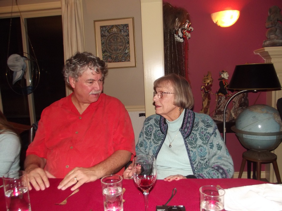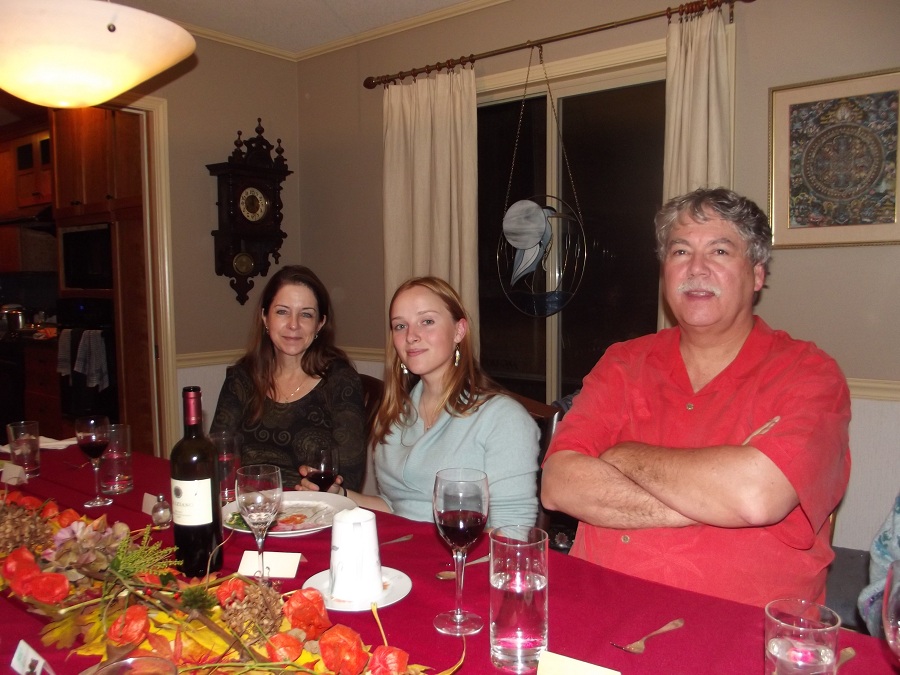 Eating dinner -- Kira, Tara, Duncan, Sandy, Dorothy, David, a bit of Natalie, Ron, and Phoebe