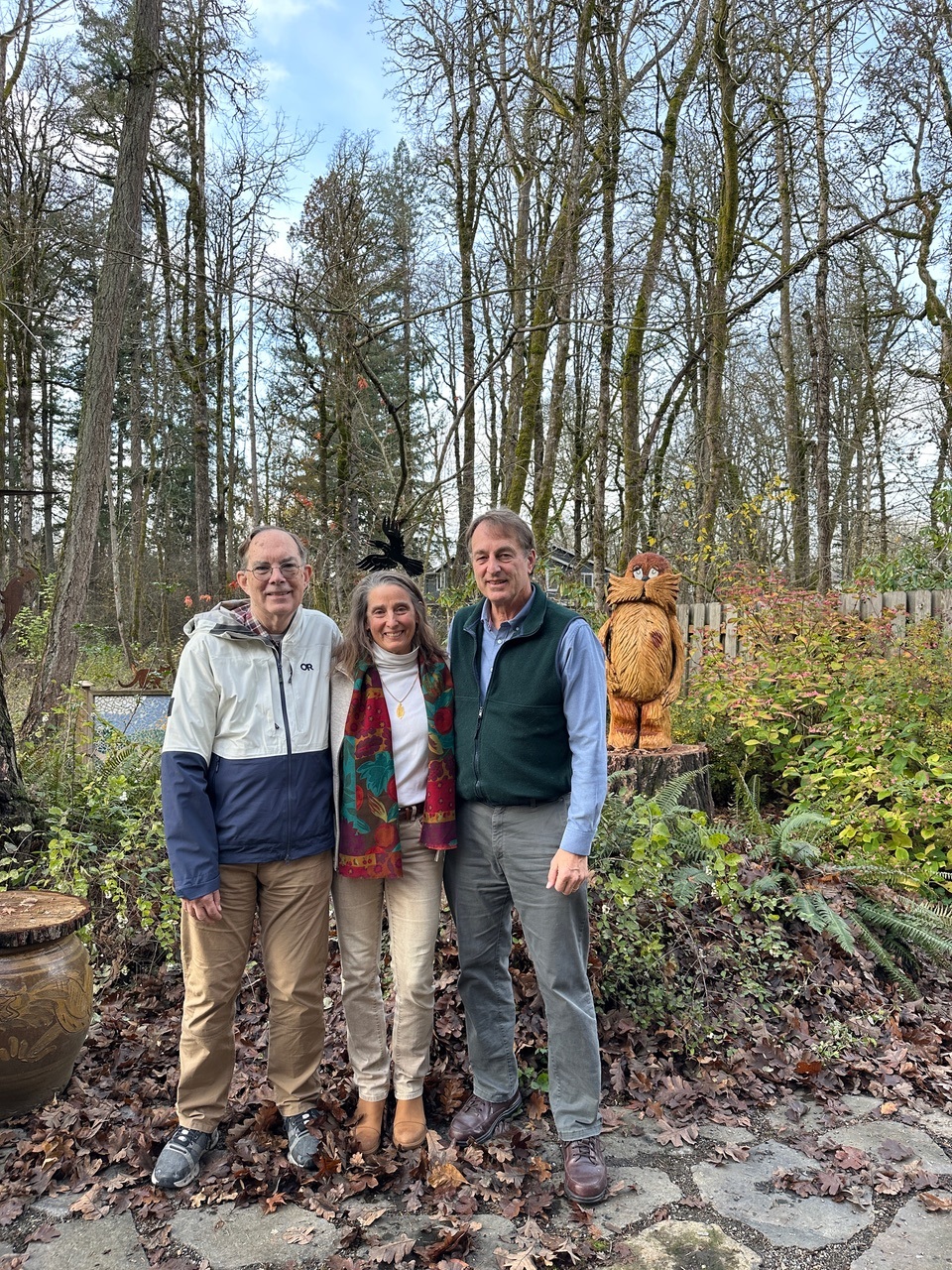 Andy, Dorothy and Tom with gazeebo in back yard
