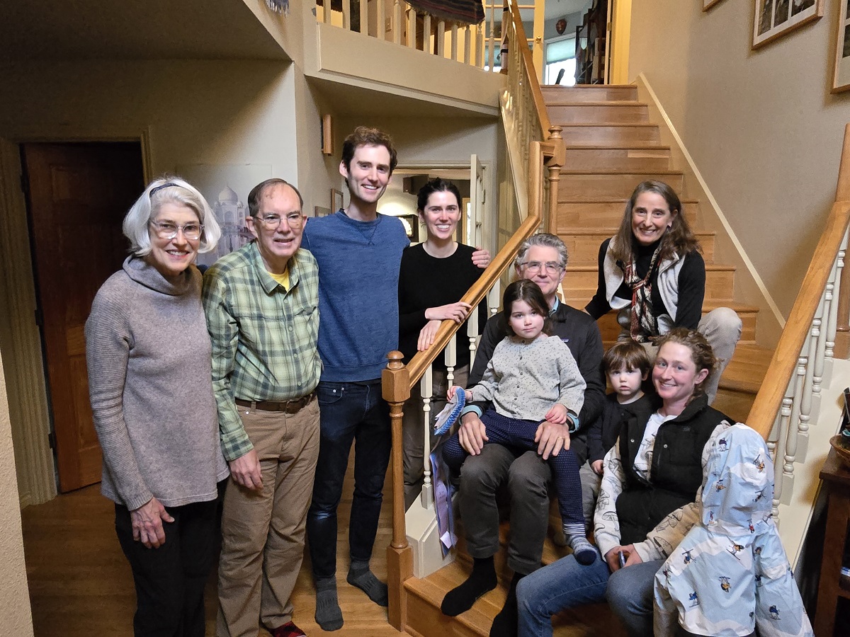 (back row) Mary Sue, Andy, Duncan, Molly, Peter and Dorothy, (front row) Colby (on Peter's lap), Bohdi and Charlette