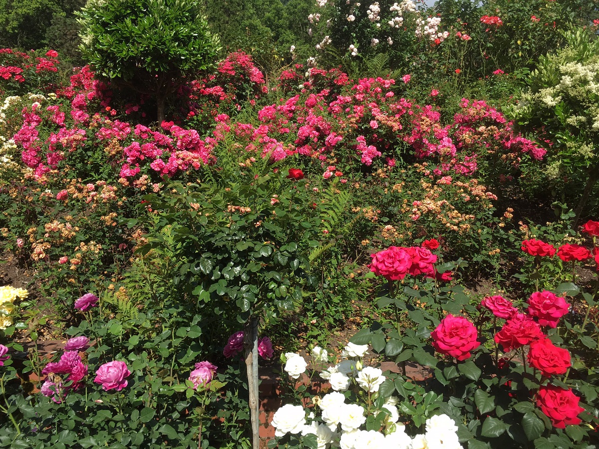 Many beautiful roses in Portland International Rose Test Garden