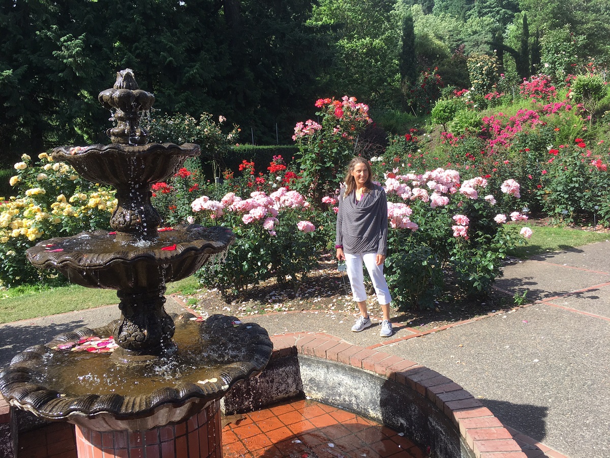 The fountain with Dorothy -- after the rose garden, Tom and Dorothy took me to a performance of The Carnival of the Animals by Sait-Saens, before driving to the airport
