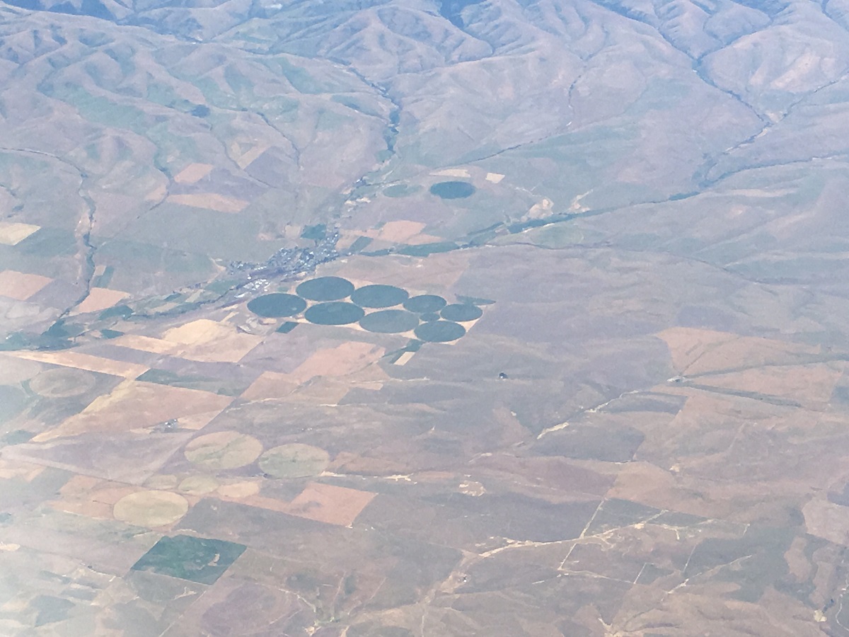 Circular irrigation on farms pumping up water to lower the water table in Pendleton, Oregon