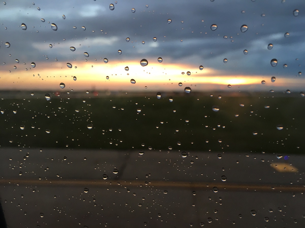 A rainbow through raindrops -- home at last