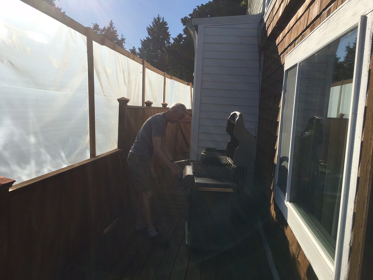 Carol Pelmas's husband, Dave Hawley, barbecuing